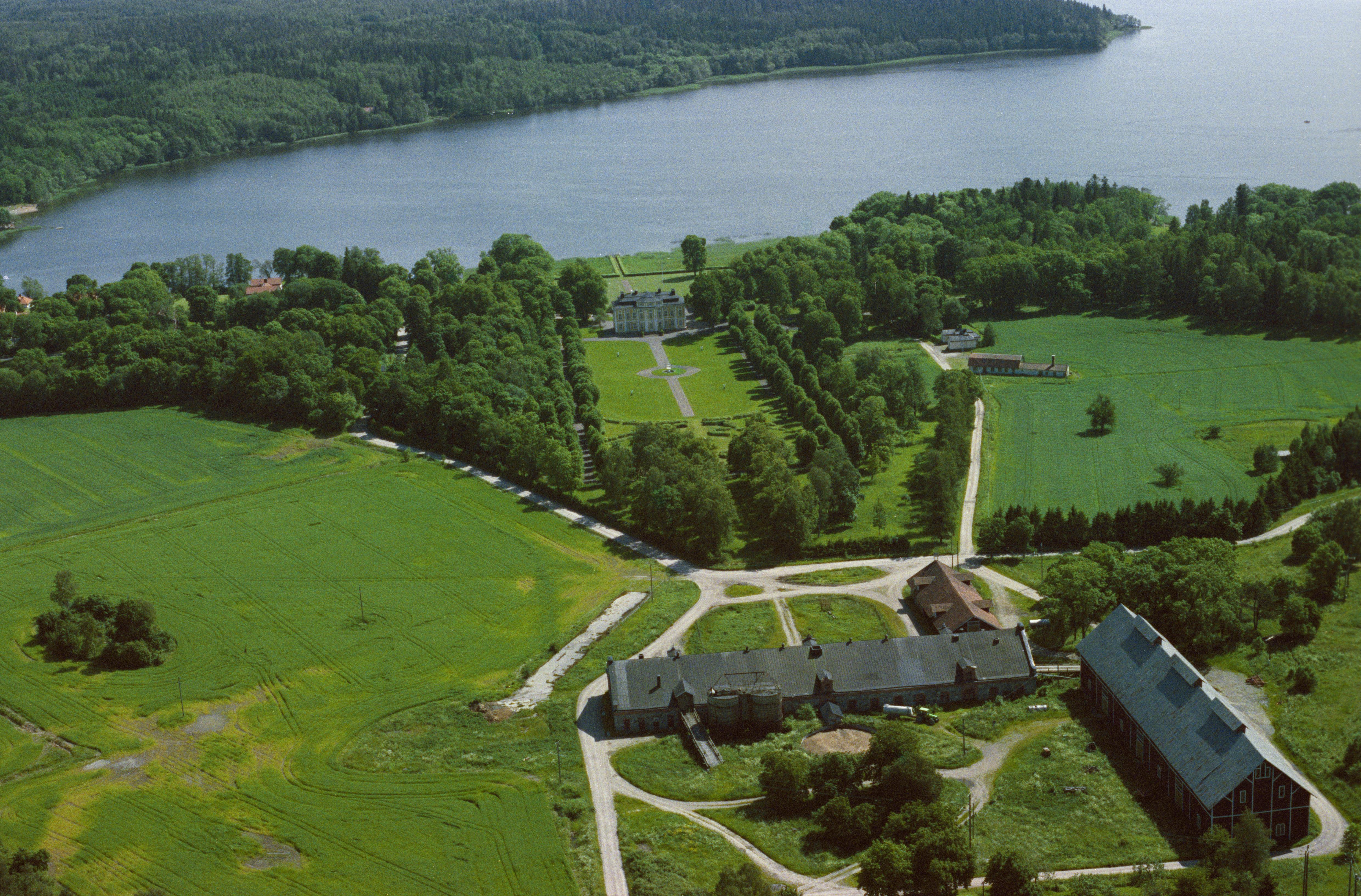 Beskrivning: Steninge slott byggnadsminne RAÄnr Husby-Ärlinghundra 101:1 vid Skarven / Sigtunafjärden i Mälaren. Bilden är tagen mot (väderstreck): SSO