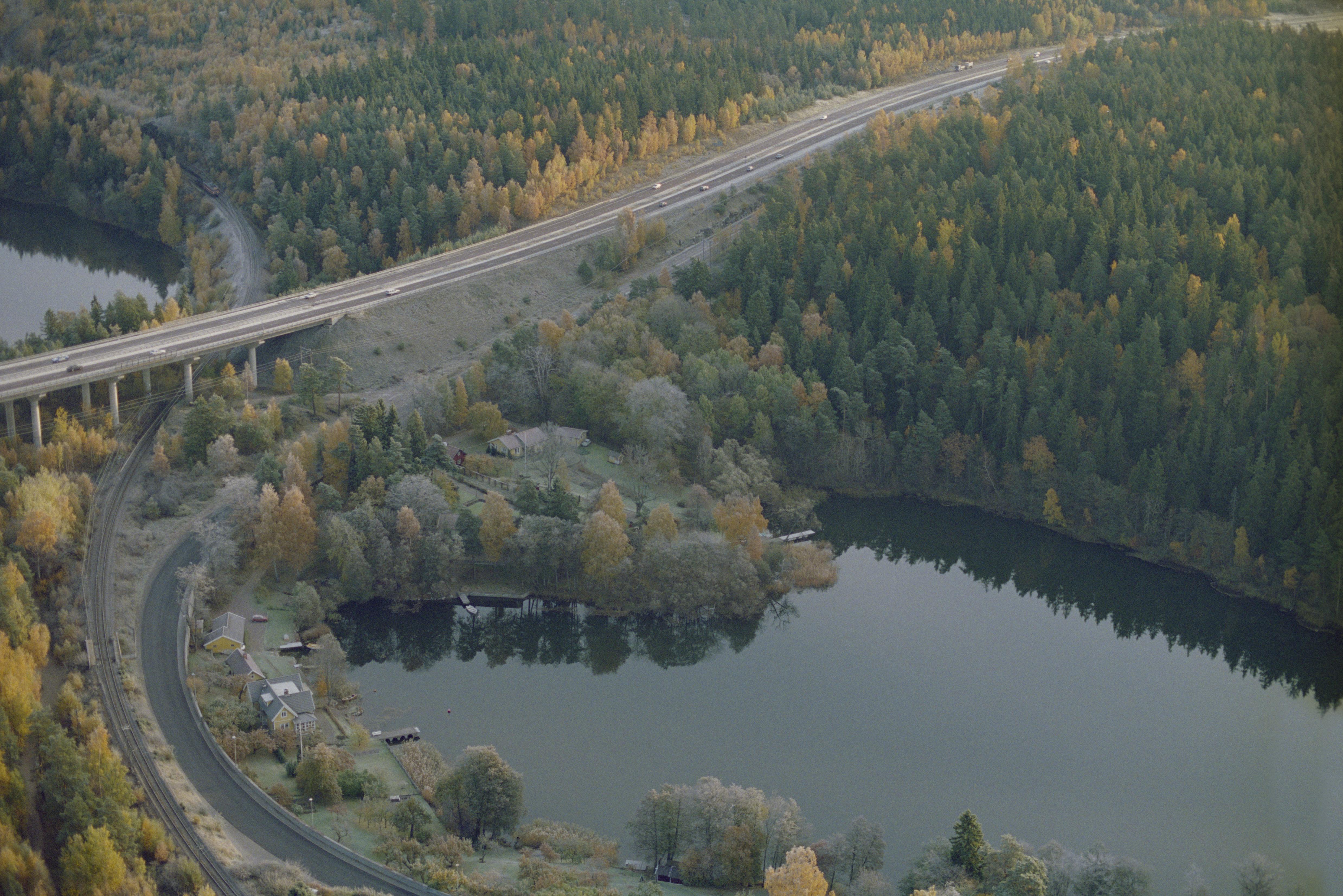 Beskrivning: Vägkorsning och bro. Väg E18 i området vid Dalkarlsbacken på Stäksön mellan Görväln i Mälaren och Ryssgraven. Färdväg RAÄnr Kungsängen 134:1. Bilden är tagen mot (väderstreck): NO