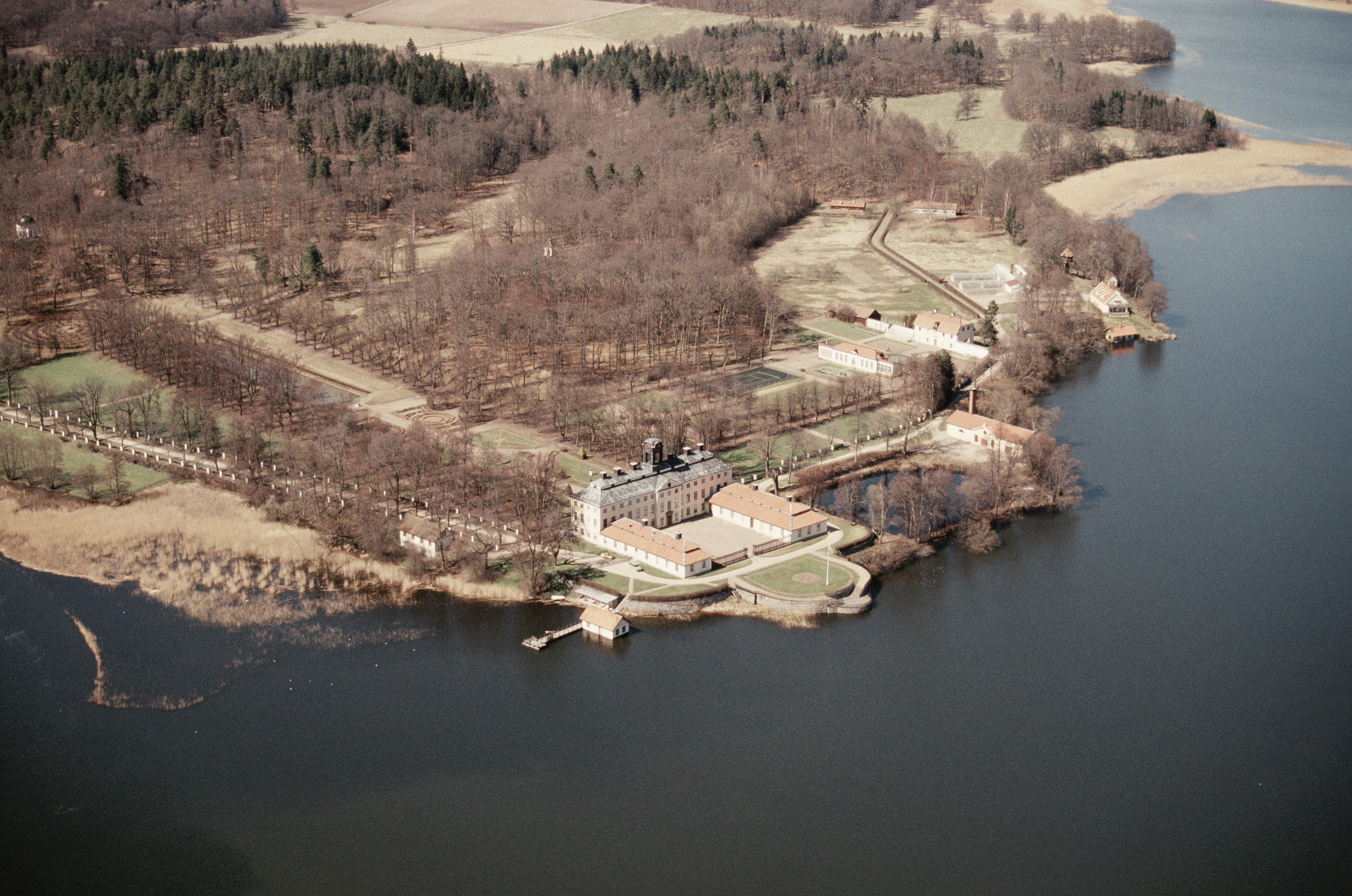 Beskrivning: Sturefors slott RAÄnr Vist 123:1 vid Stångån och sjön Ärlången. Bilden är tagen mot (väderstreck): NV