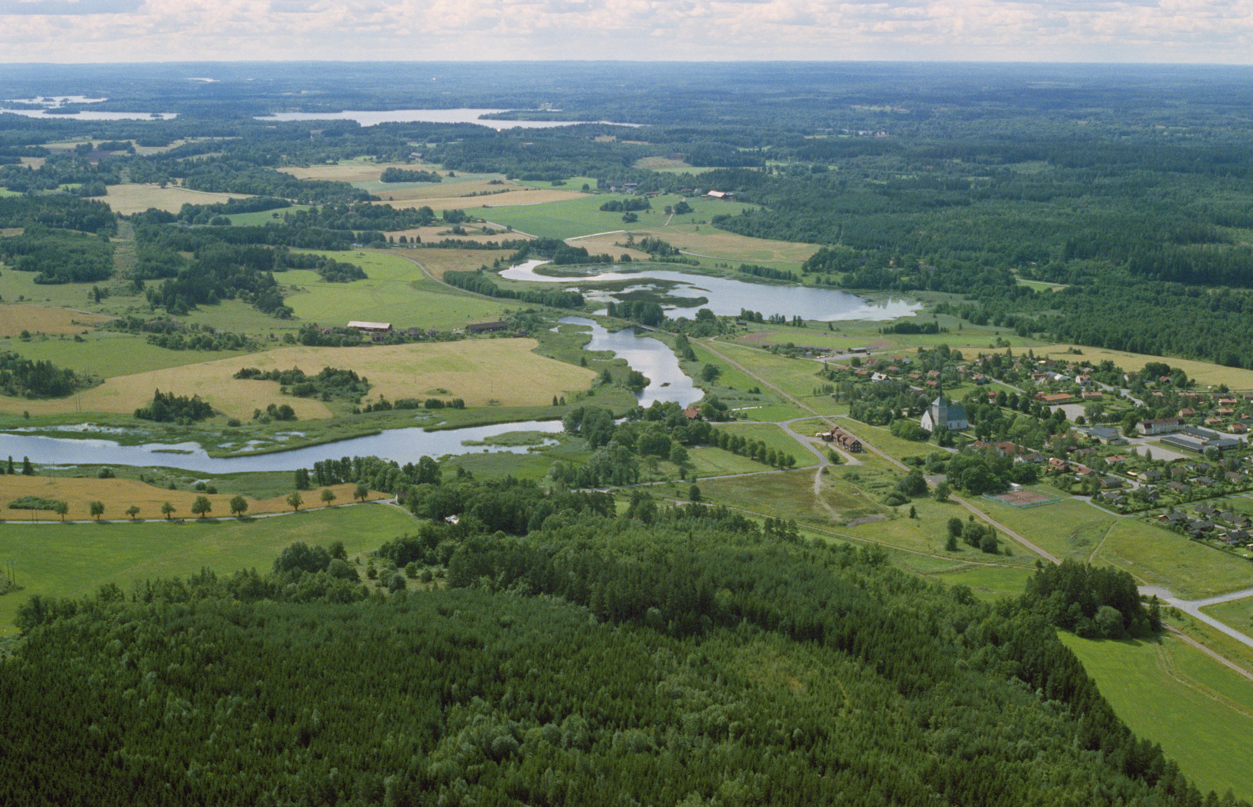 Beskrivning: Stångån / Kinda kanal vid tätorten Vist, söder om tätorten Sturefors. Vists kyrka till höger. Bilden är tagen mot (väderstreck): S