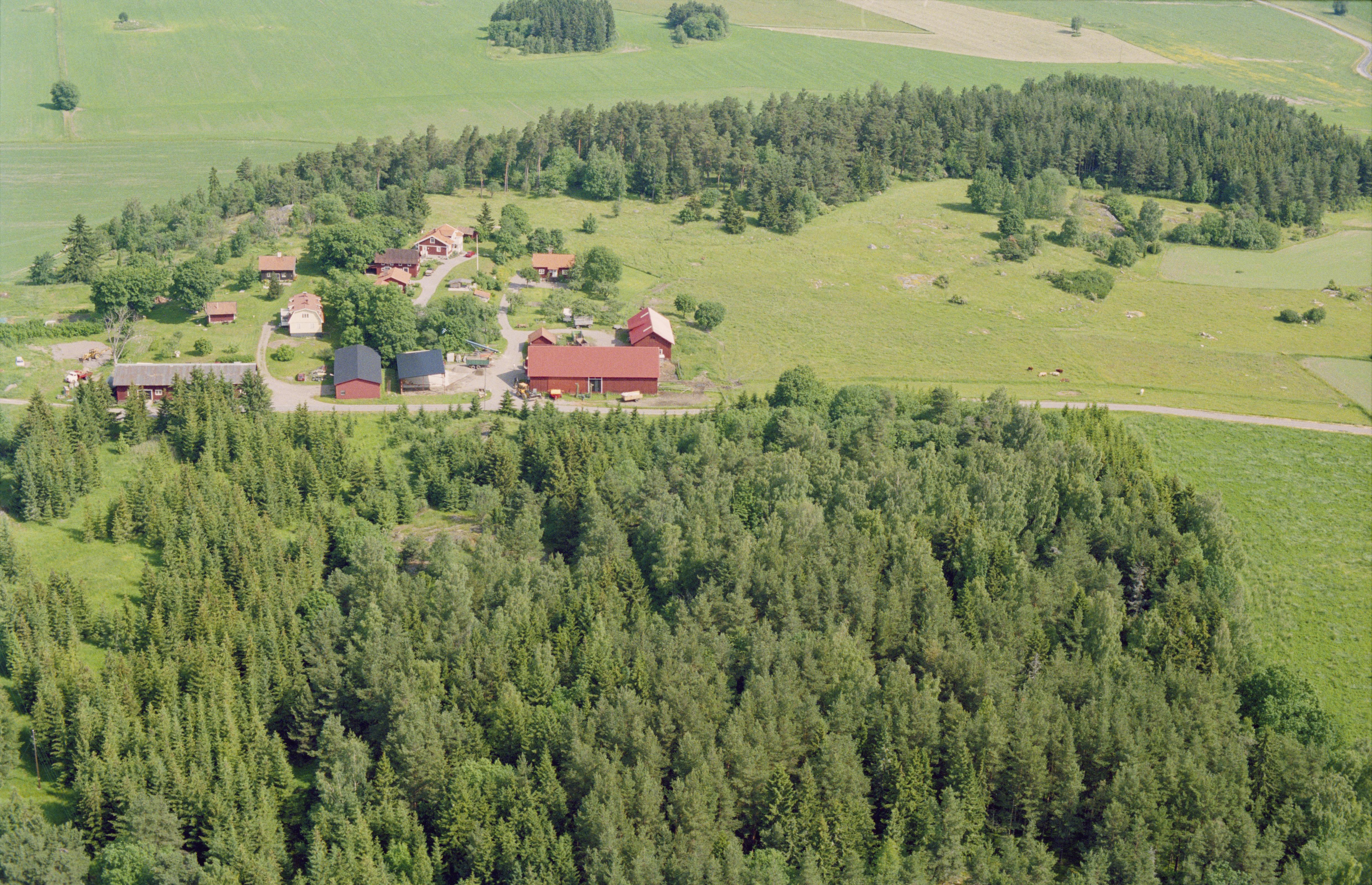Beskrivning: Skälby gård. I bildens övre del gravfält RAÄnr Kungsängen 34:1 och i bildens nedre del gravfält Kungsängen 36:1. Bilden är tagen mot (väderstreck): N