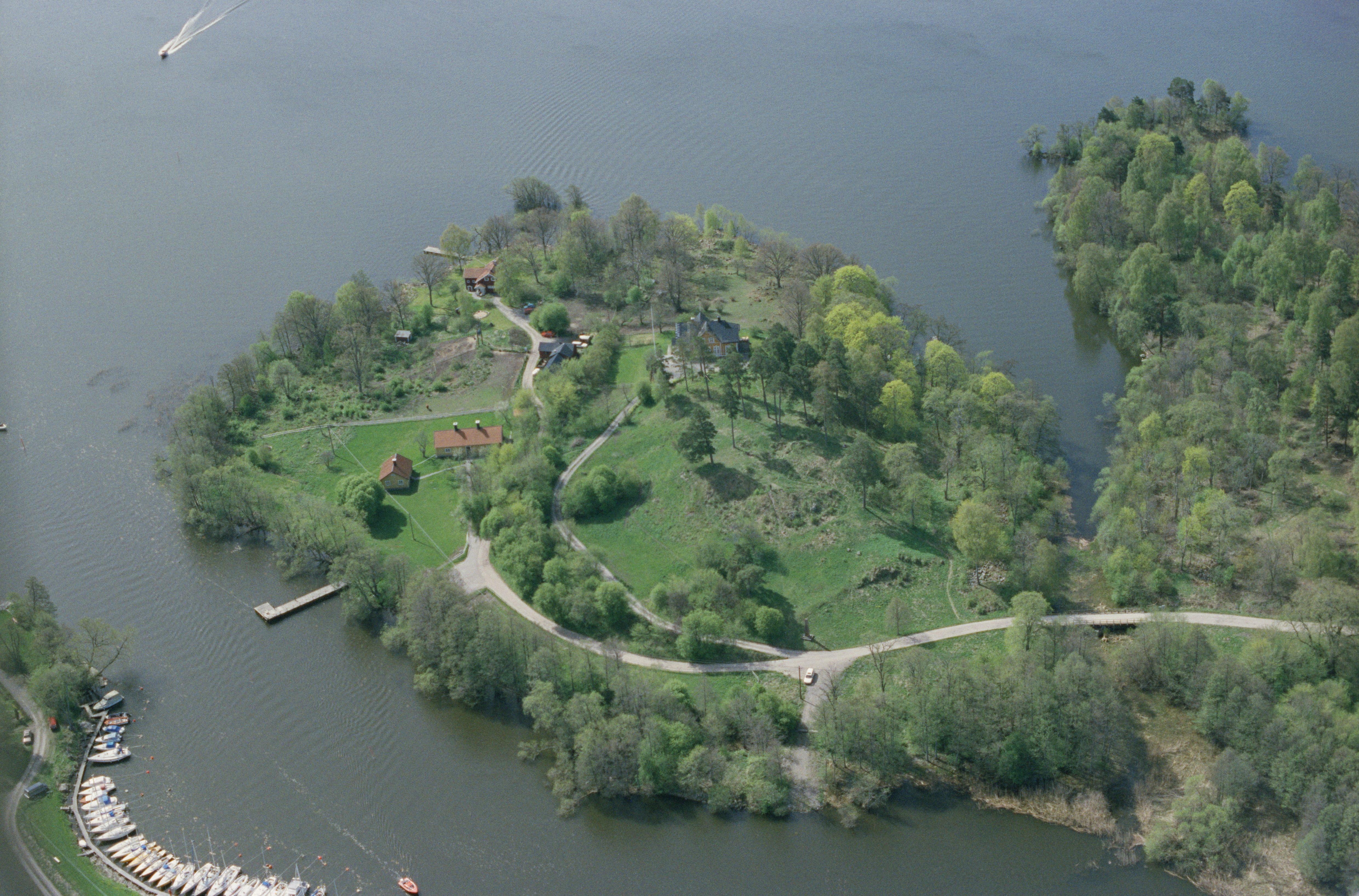 Beskrivning: Görväln i Mälaren vid gränsen mellan socknen Järfälla och Kungsängen. Vid bildens mitt Stäketsholmen med borgruin Sankt Eriks borg RAÄnr Kungsängen 73:1. Stäket i Järfälla socken nere till vänster. Bilden är tagen mot (väderstreck): SV