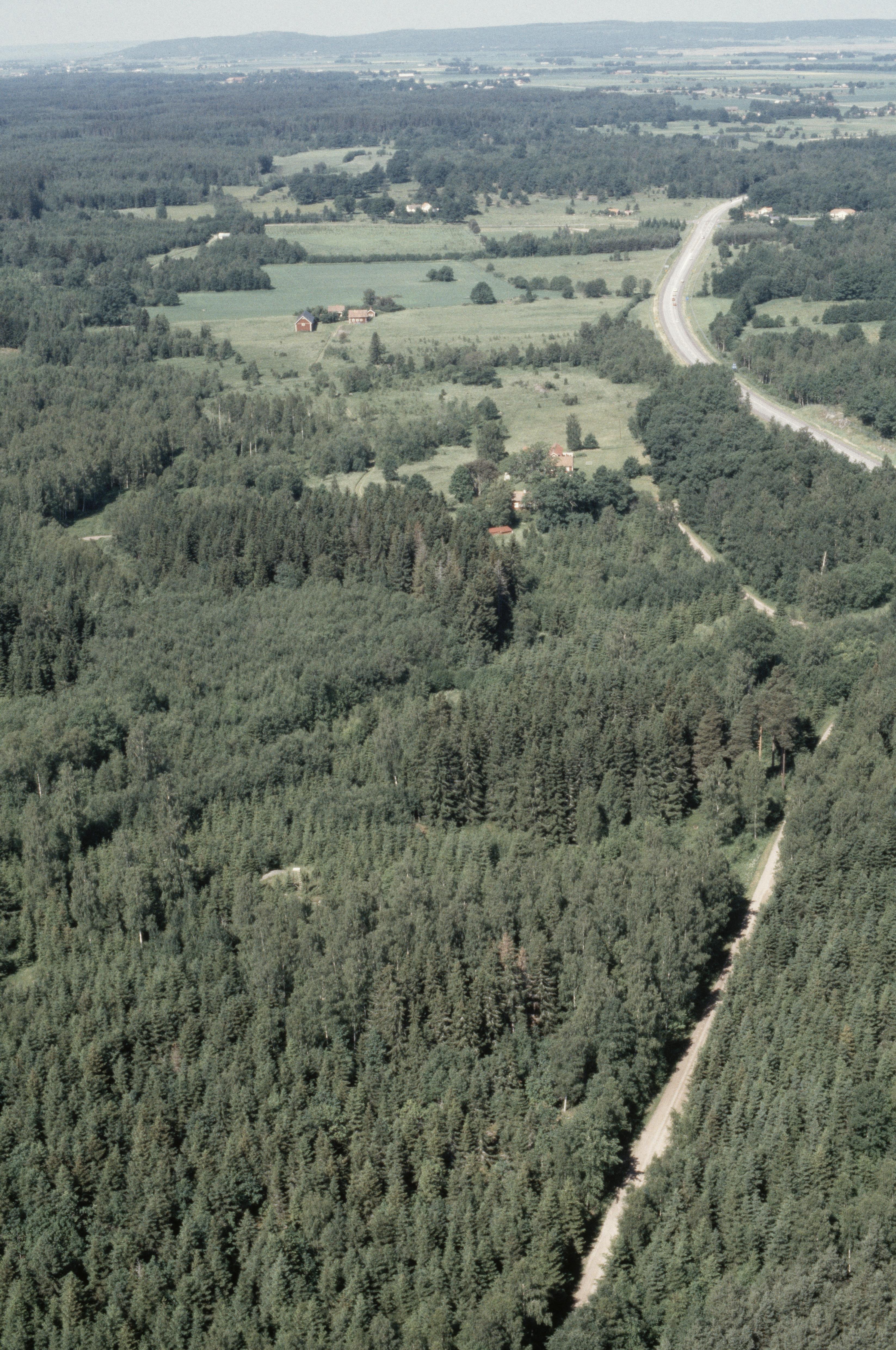 Beskrivning: Innan bygging av väg E4. Från Ekeberg mot Vasaborg och Vilan. Stensträngar, ristning och boplats RAÄnr Väderstad 219:1 och 219:2 vid bildens mitt. Bilden är tagen mot (väderstreck): V