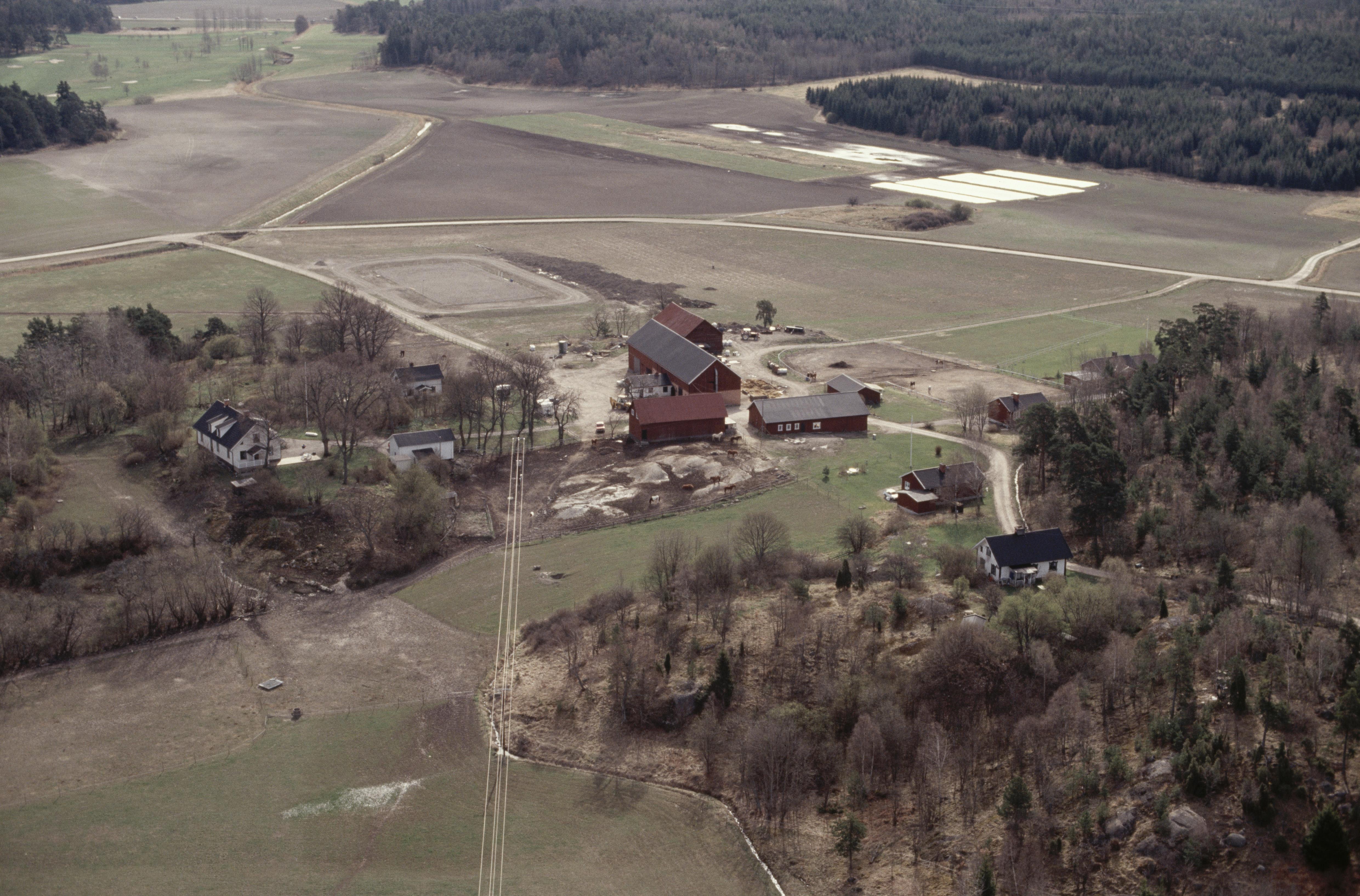 Beskrivning: Berga gård på Lovön. Till höger Lunda gamla tomt med gravfält RAÄnr Lovö 34:1, bytomt Lovö 224 och färdväg Lovö 207 m.fl. Bilden är tagen mot (väderstreck): OSO