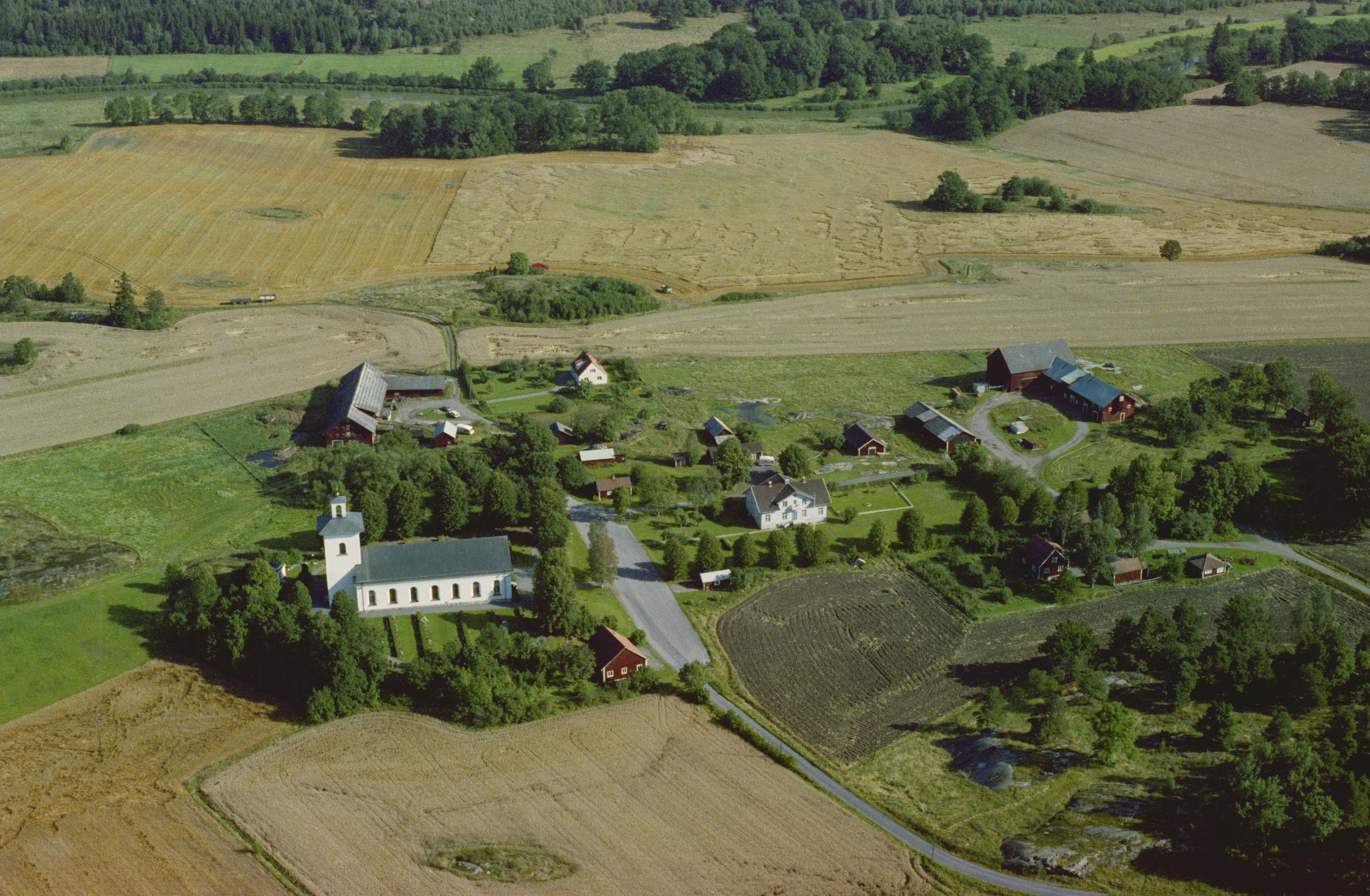 Beskrivning: Västra Husby kyrka. Fyndplats RAÄnr Västra Husby 266. Bilden är tagen mot (väderstreck): N