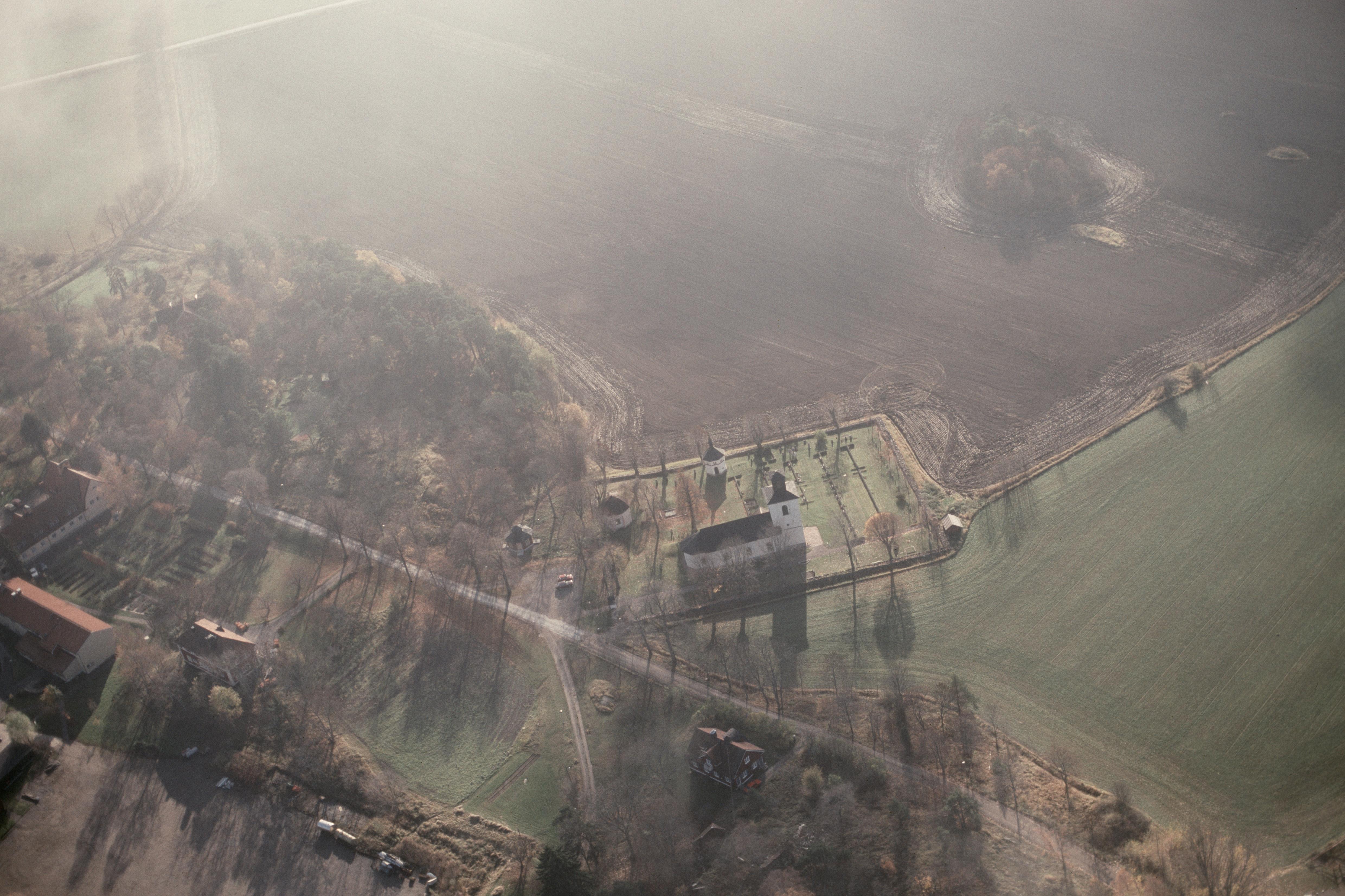Beskrivning: Anmärkning (övrig): Riksintresse-nr/namn: AB34 - Låssa. Socken: Låssa. Motivering: Centralbygd i viktig korsning mellan norra mälarvägen och den forna vattenleden Birka-Uppsala, med unik fornlämningsmiljö på och kring ett åskrön, med den troliga kultplatsen Rösaring och gravfält som visar på en omfattande bosättning från bronsåldern till vikingatid. Det öppna, sammanhängande odlingslandskapet i de lägre landskapspartierna, med inslag av herrgårdar, bosättningsmönster som har kontinuitet ner i den yngre järnåldern och Låssa medeltidskyrka, som uppfördes som patronatskyrka till Säbyholms gård. (Sockencentrum). - Uttryck för riksintresset: Rösaring med stora gravrösen, labyrint och en stenkantad s.k. processionsv(…) Texten i detta fält har förkortats vid migrering till e-arkivet. Se filbilagan extra.xml för fullständig information under note_archivist. Beskrivning: Låssa kyrka. Bilden är tagen mot (väderstreck): SV Fotosyfte: Flygbildsdokumentation