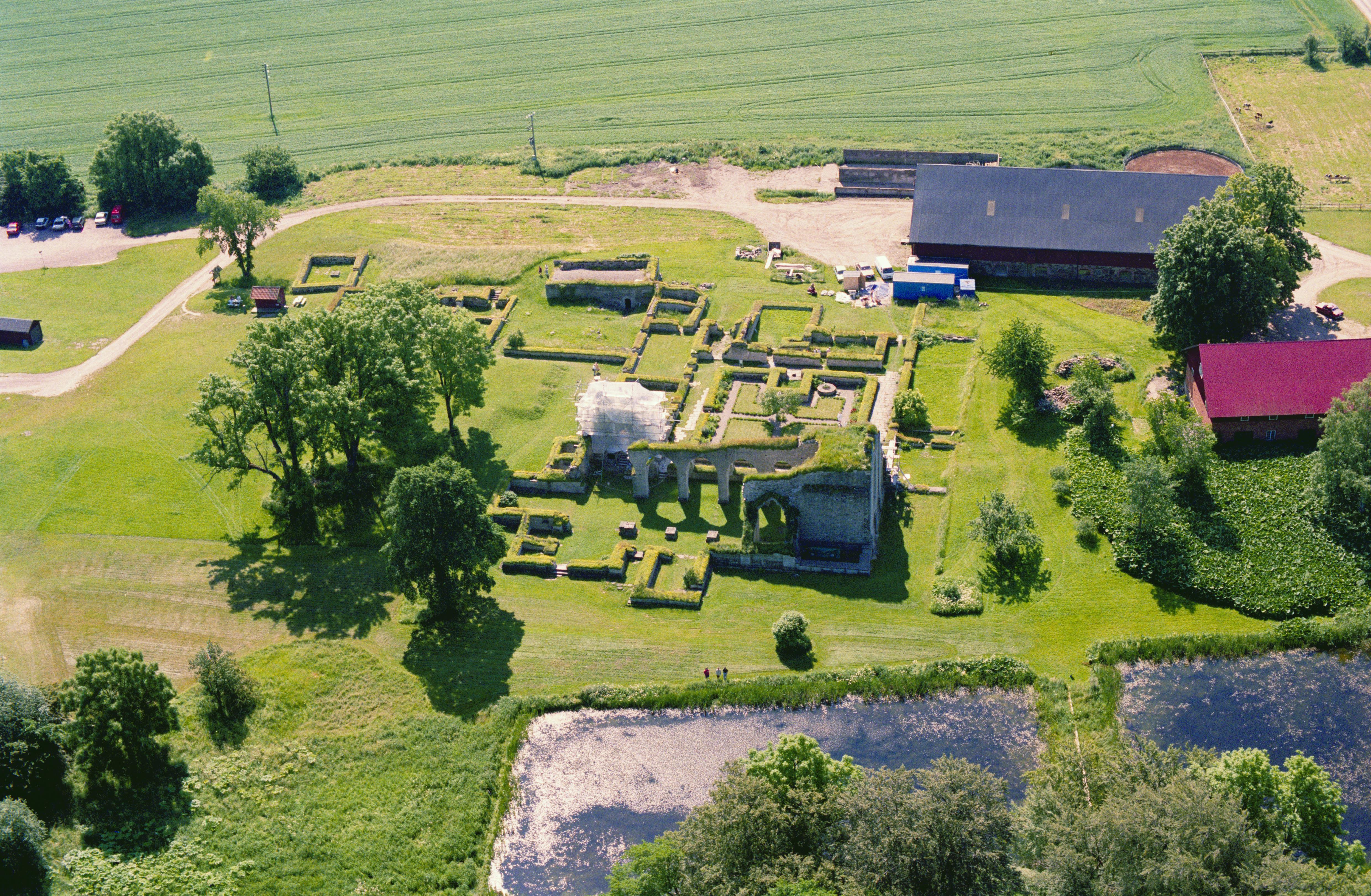 Beskrivning: Alvastra kloster. Alvastra klosterruin RAÄnr Västra Tollstad 1:1. Bilden är tagen mot (väderstreck): S