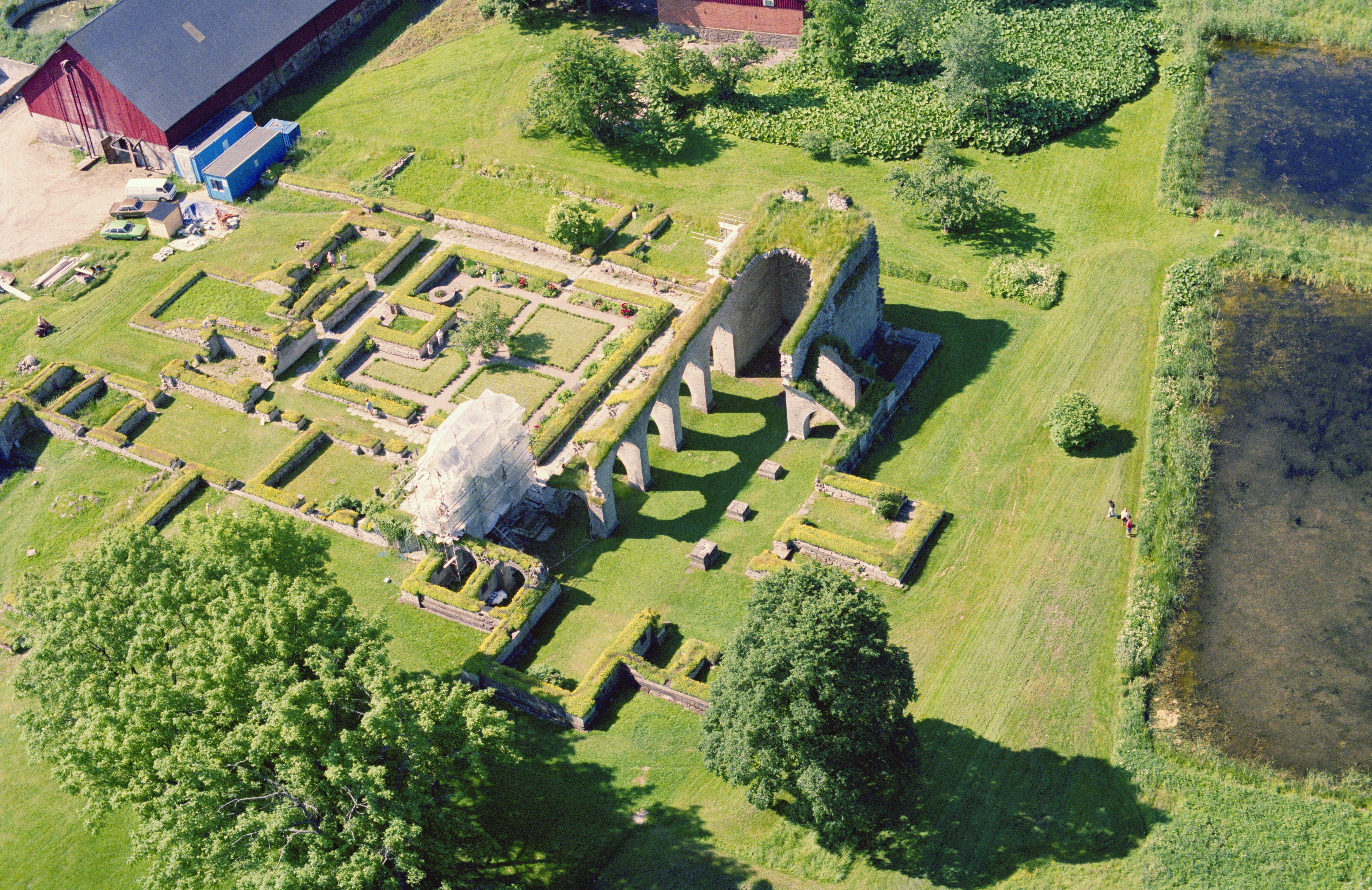 Beskrivning: Alvastra kloster. Alvastra klosterruin RAÄnr Västra Tollstad 1:1. Bilden är tagen mot (väderstreck): SV