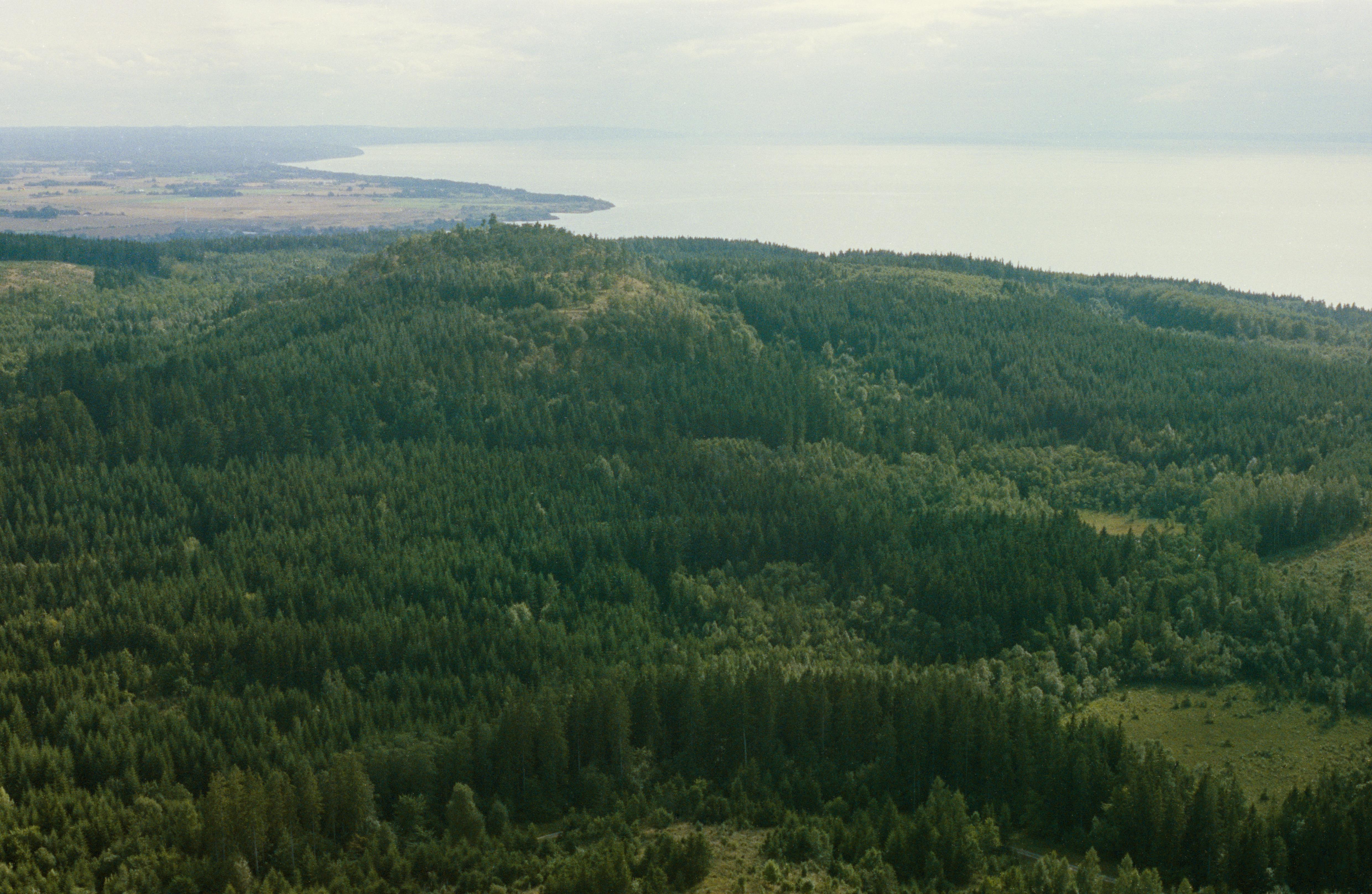 Beskrivning: I bildens övre del fornborg RAÄnr Västra Tollstad 17:1 på Hjässan, Omberg. Bilden är tagen mot (väderstreck): SSV