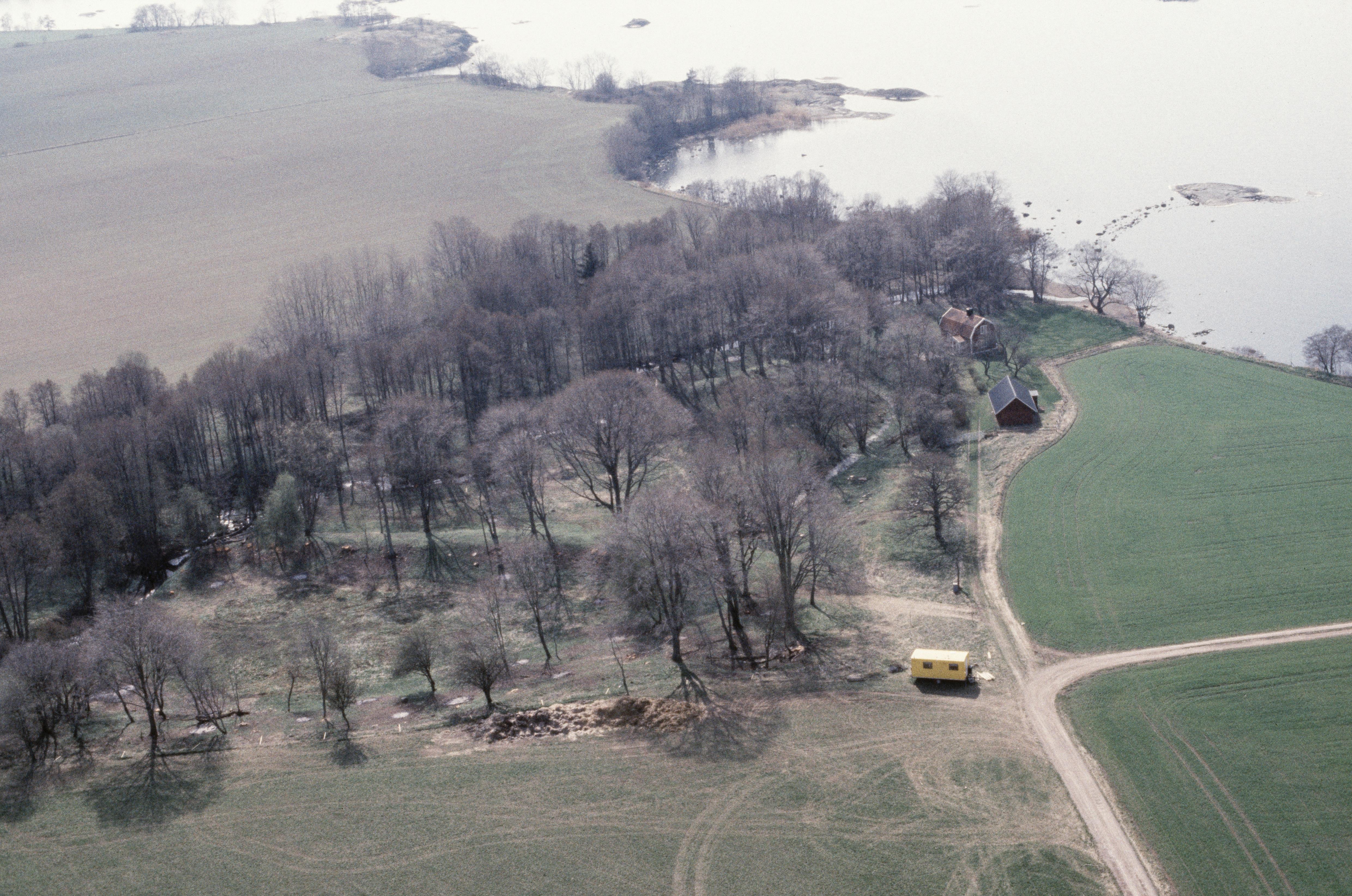 Beskrivning: Alvastra kloster. Ålebäcken i södra delen av klosterområdet. Kvarn RAÄnr Västra Tollstad 93:1, boplats Västra Tollstad 84:1 och tegelindustri Västra Tollstad 13:1 m.fl. vid bildens mitt. Bilden är tagen mot (väderstreck): VSV