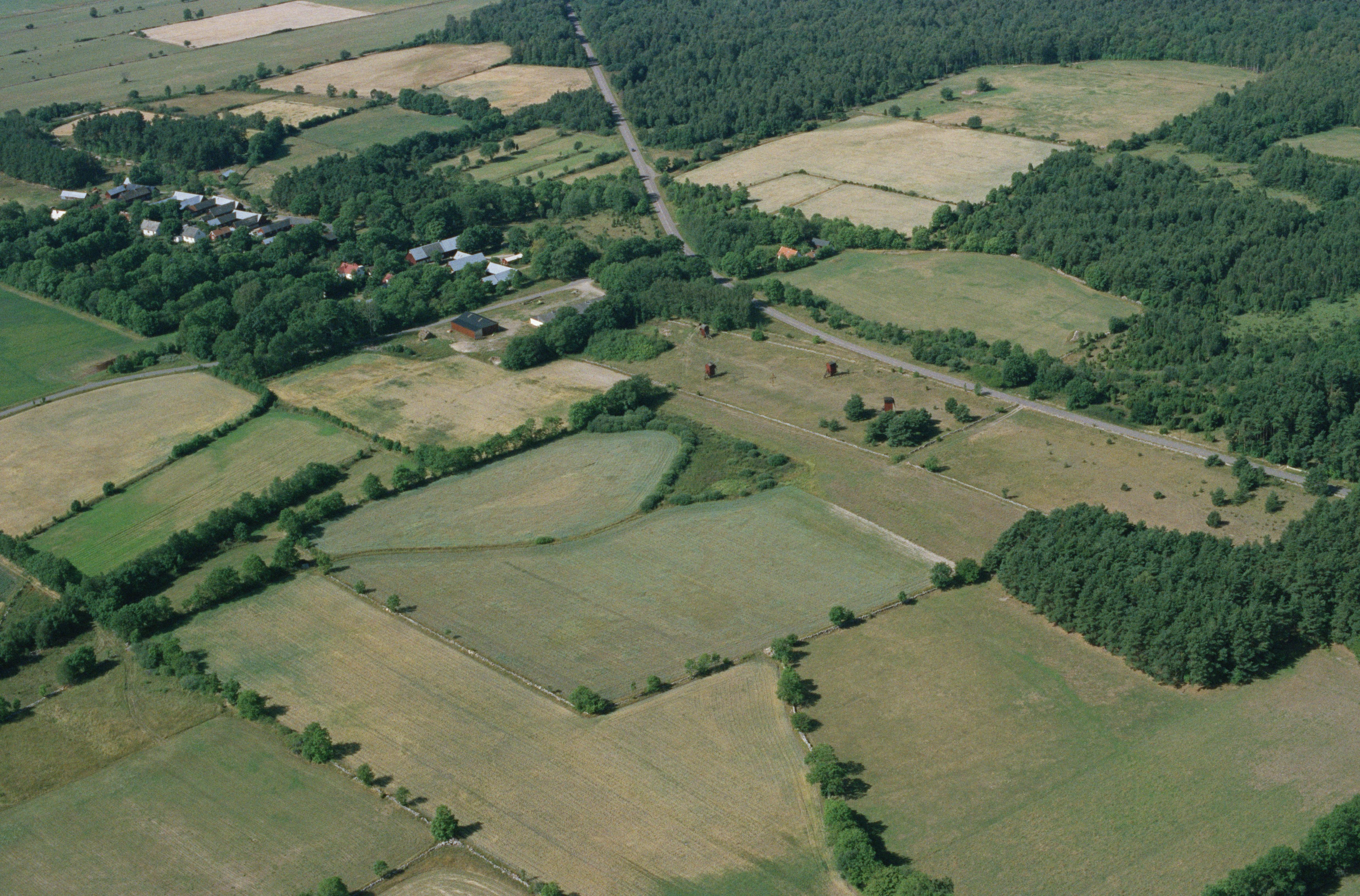 Beskrivning: Fyndplats (flintdolk) RAÄnr Bredsätra 82:1 i bildens övre del till vänster. Till höger om bildens mitt stensättningar RAÄnr Bredsätra 2:1-3. Bilden är tagen mot (väderstreck): SV