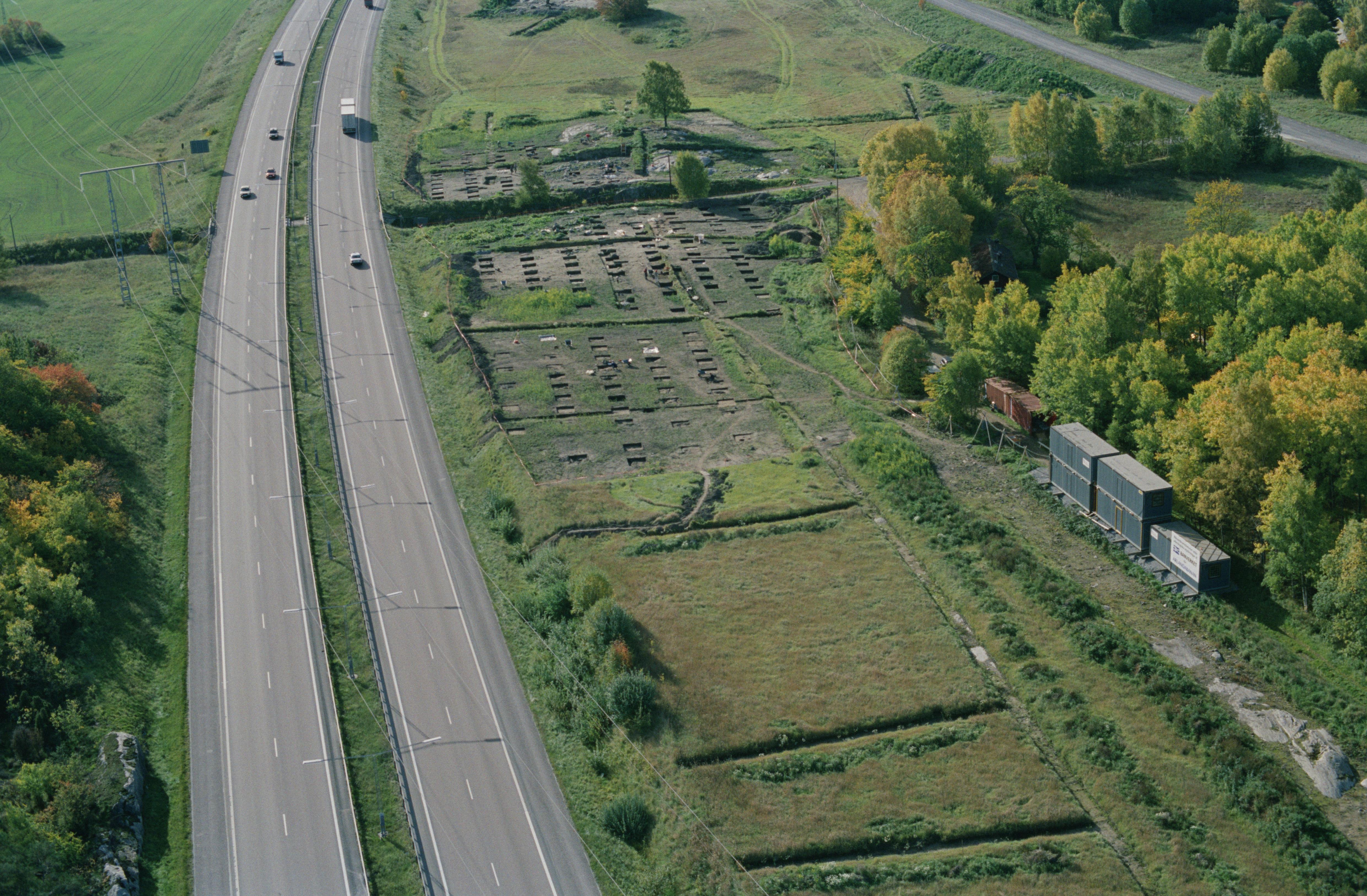 Beskrivning: Östra delen av Rosersberg, väster om Ström. Arkeologisk undersökning av gravfält Norrsunda 52:1 innan bygge av järnväg (Arlandabanan). Bilden är tagen mot (väderstreck): S