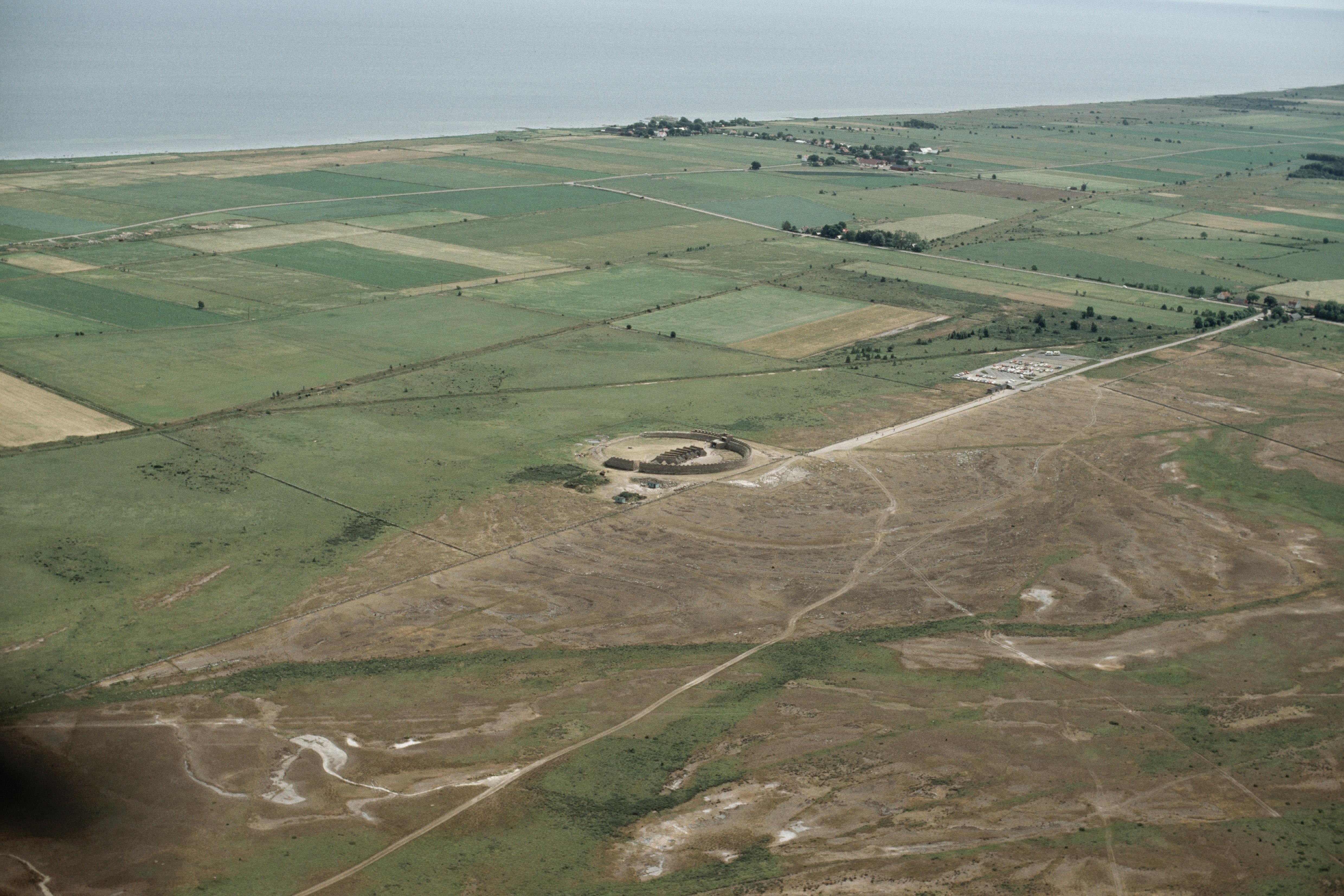 Beskrivning: Alvaret, södra delen. Fornborgsmiljö Eketorps borg RAÄnr Gräsgård 45:1 vid bildens mitt. Bilden är tagen mot (väderstreck): SO