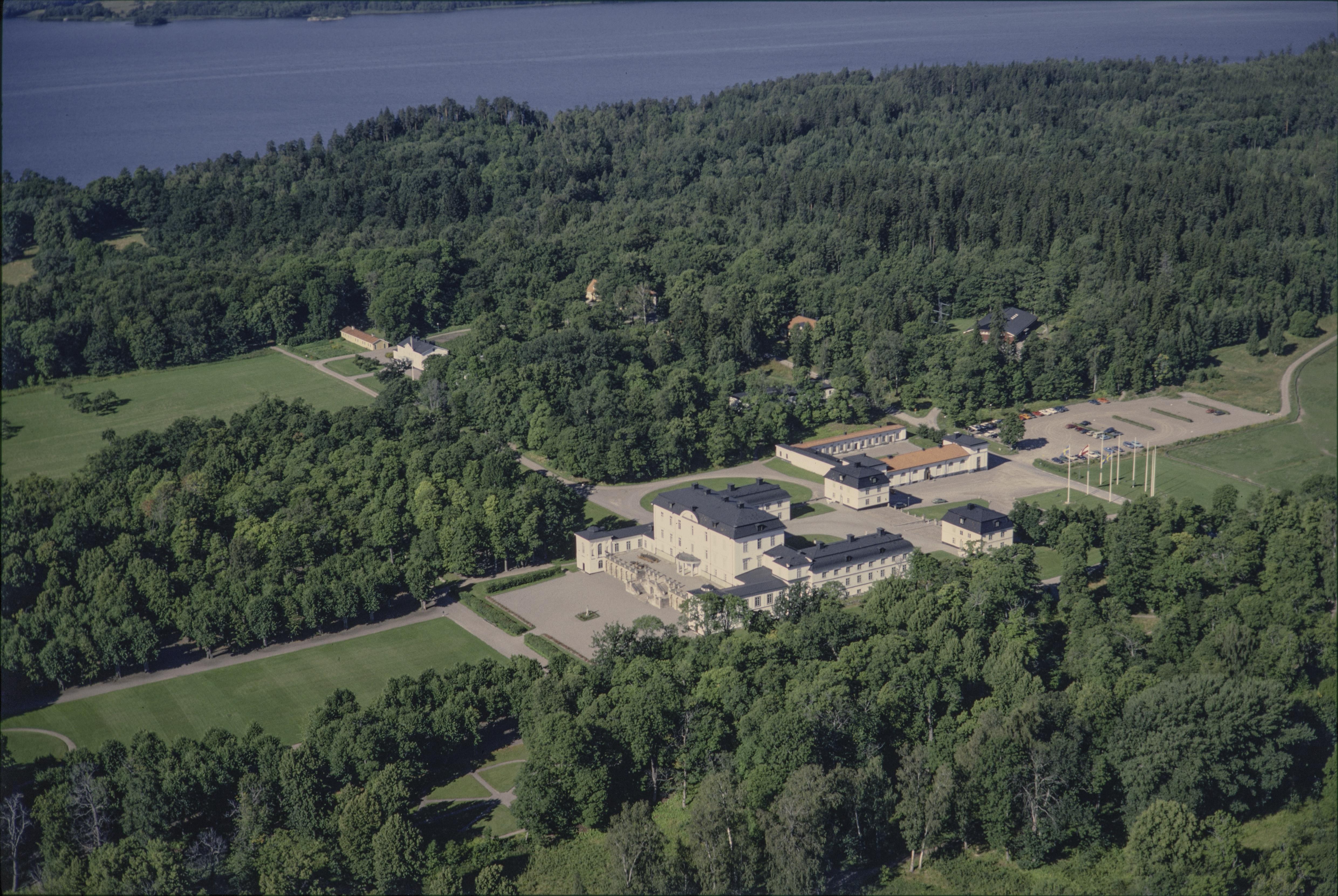 Beskrivning: Rosersbergs slott statligt byggnadsminne RAÄnr Norrsunda 77:1 vid Rosersbergsviken i Mälarens fjärd Skarven. Bilden är tagen mot (väderstreck): VNV