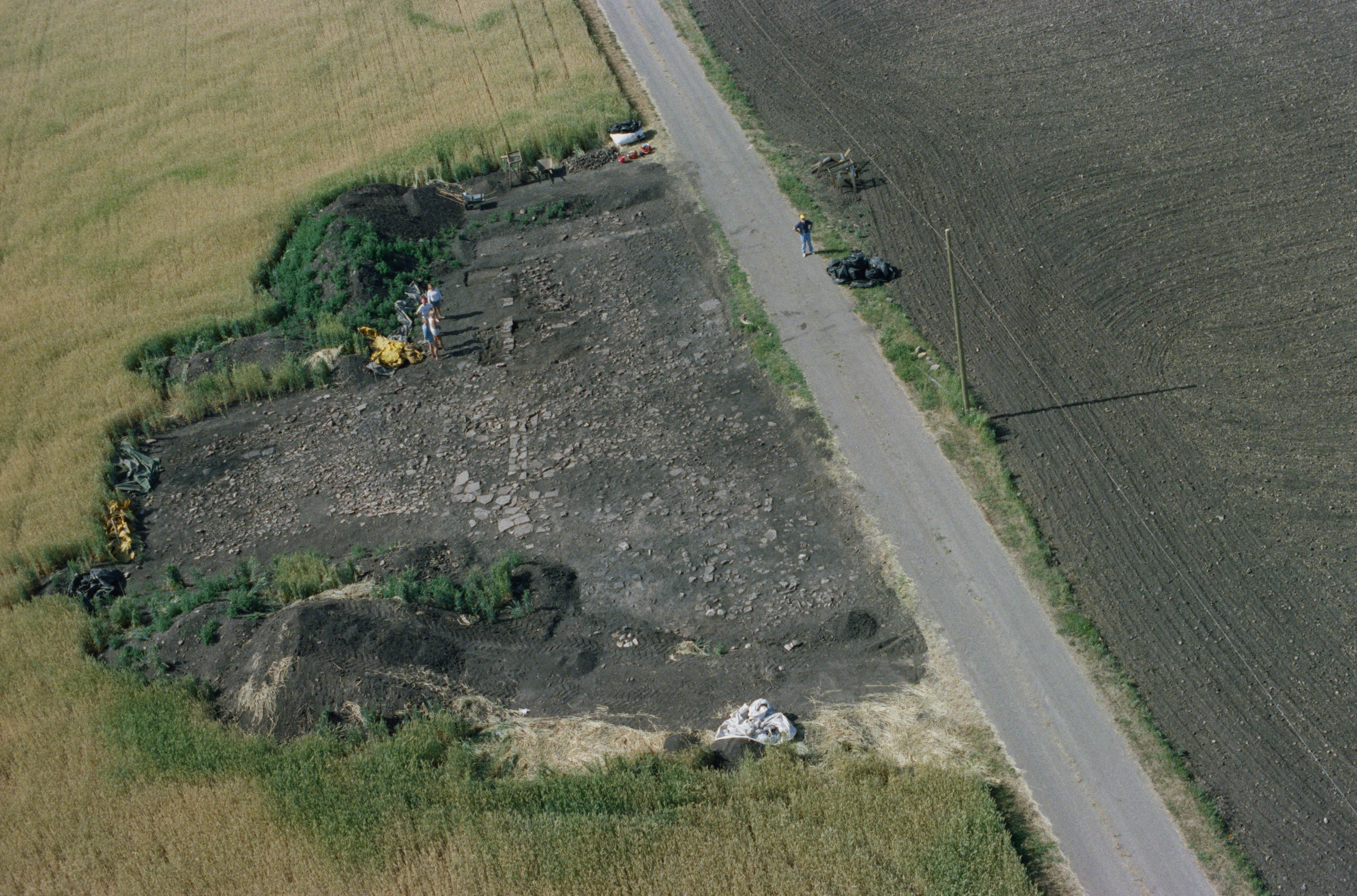 Beskrivning: Alvaret, södra delen vid Solberga, Kvinnsgröta, Löt och Mellstaby. Arkeologisk undersökning av boplats RAÄnr Gräsgård 81:1. Bilden är tagen mot (väderstreck): SV