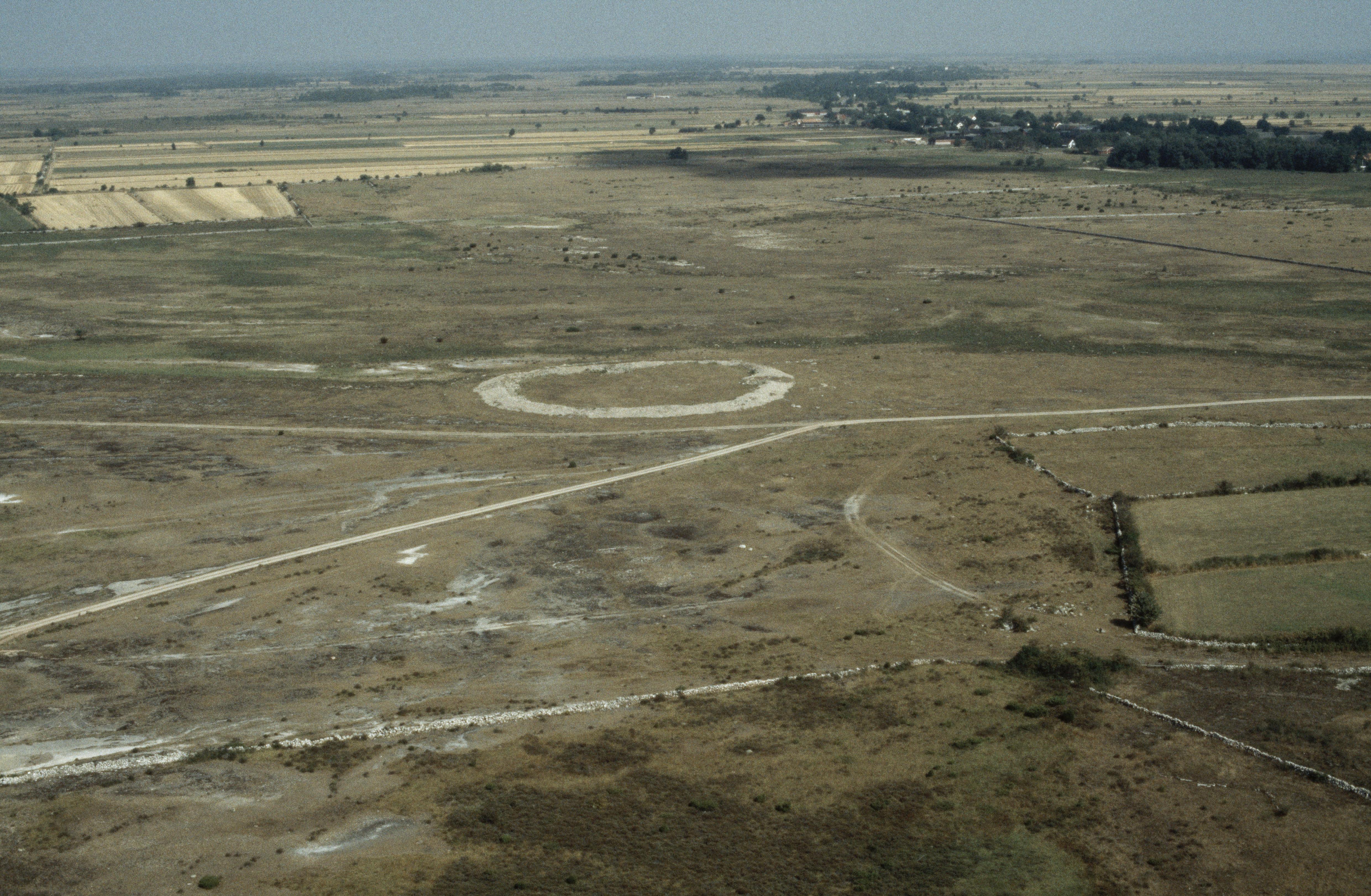 Beskrivning: Alvaret. Fornborg RAÄnr Hulterstad 20:1. I bildens övre del Triberga by. Bilden är tagen mot (väderstreck): NNO