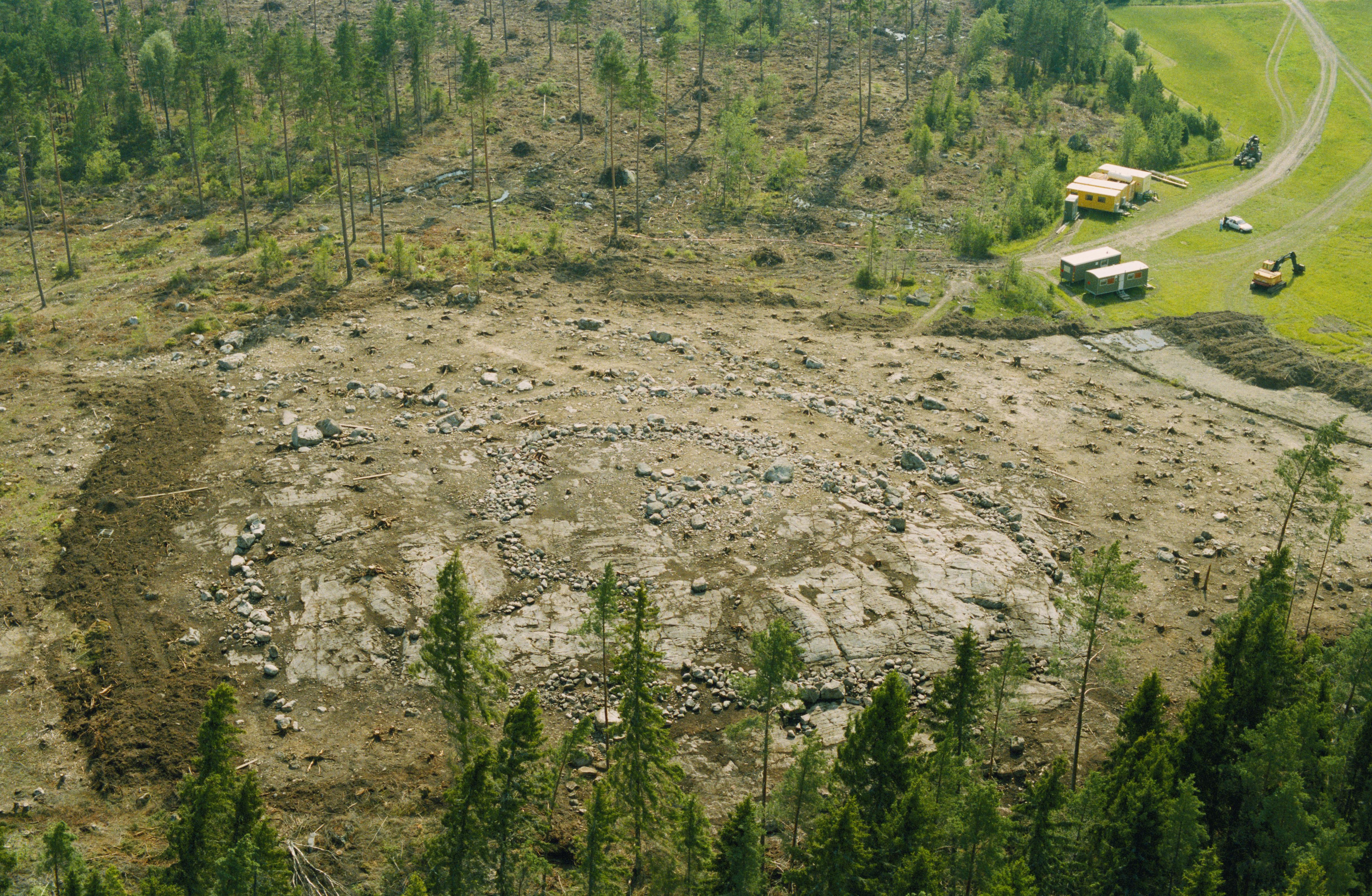 Beskrivning: Arkeologisk undersökning innan bygge av järnväg (Arlandabanan) i Rickebyåns dalgång i områden söder om Svartsjön. Fornborg Odensala 235:1, boplats Odensala 489:1, m.fl. Bilden är tagen mot (väderstreck): SO