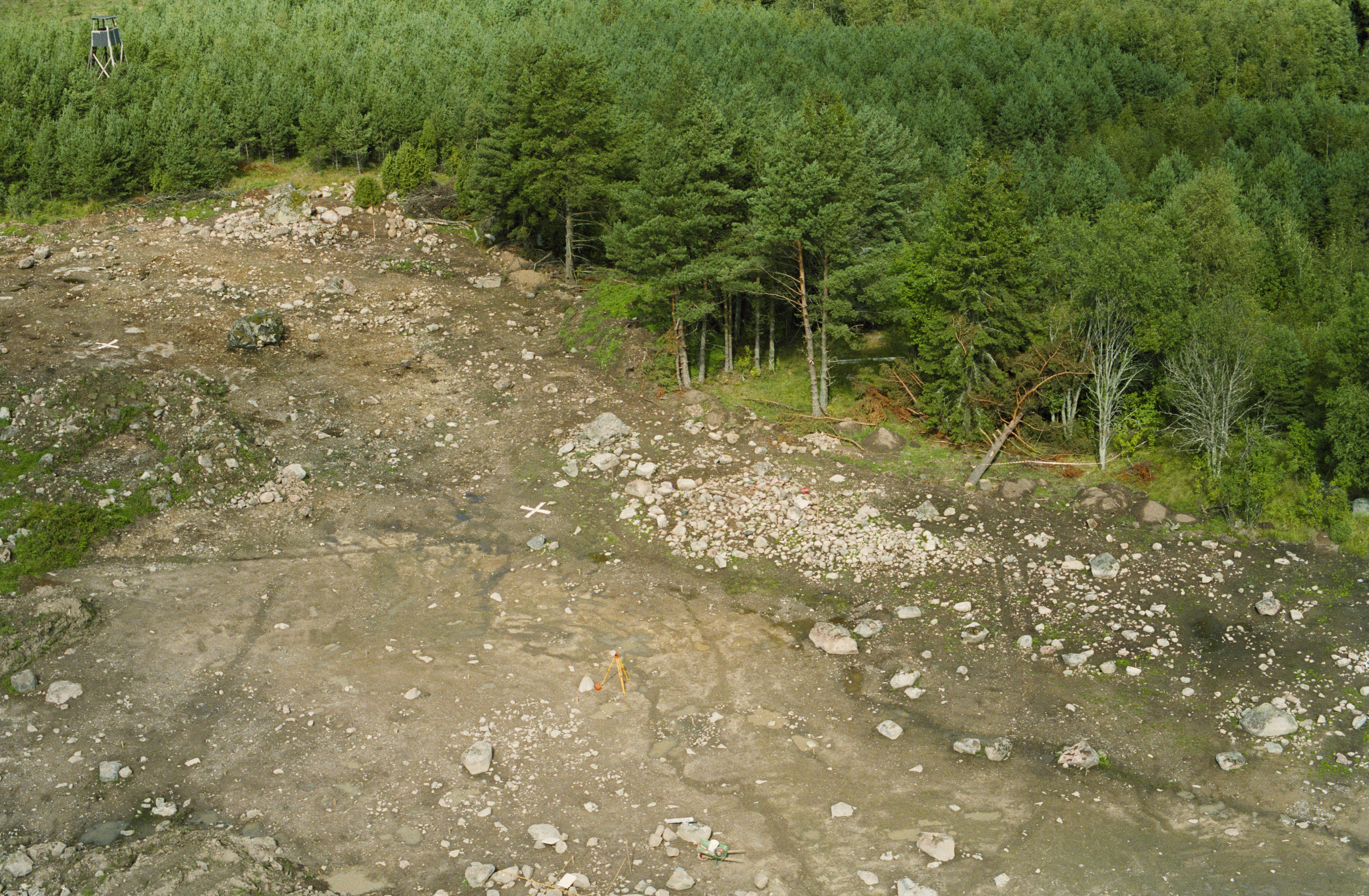 Beskrivning: Arkeologisk undersökning innan bygge av järnväg (Arlandabanan) i Rickebyåns dalgång vid Åslunda by sydost om Svartsjön. Bo- och gravplats RAÄnr Odensala 11:1, 13:1 och 402:1-2 m.fl. Bilden är tagen mot (väderstreck): N