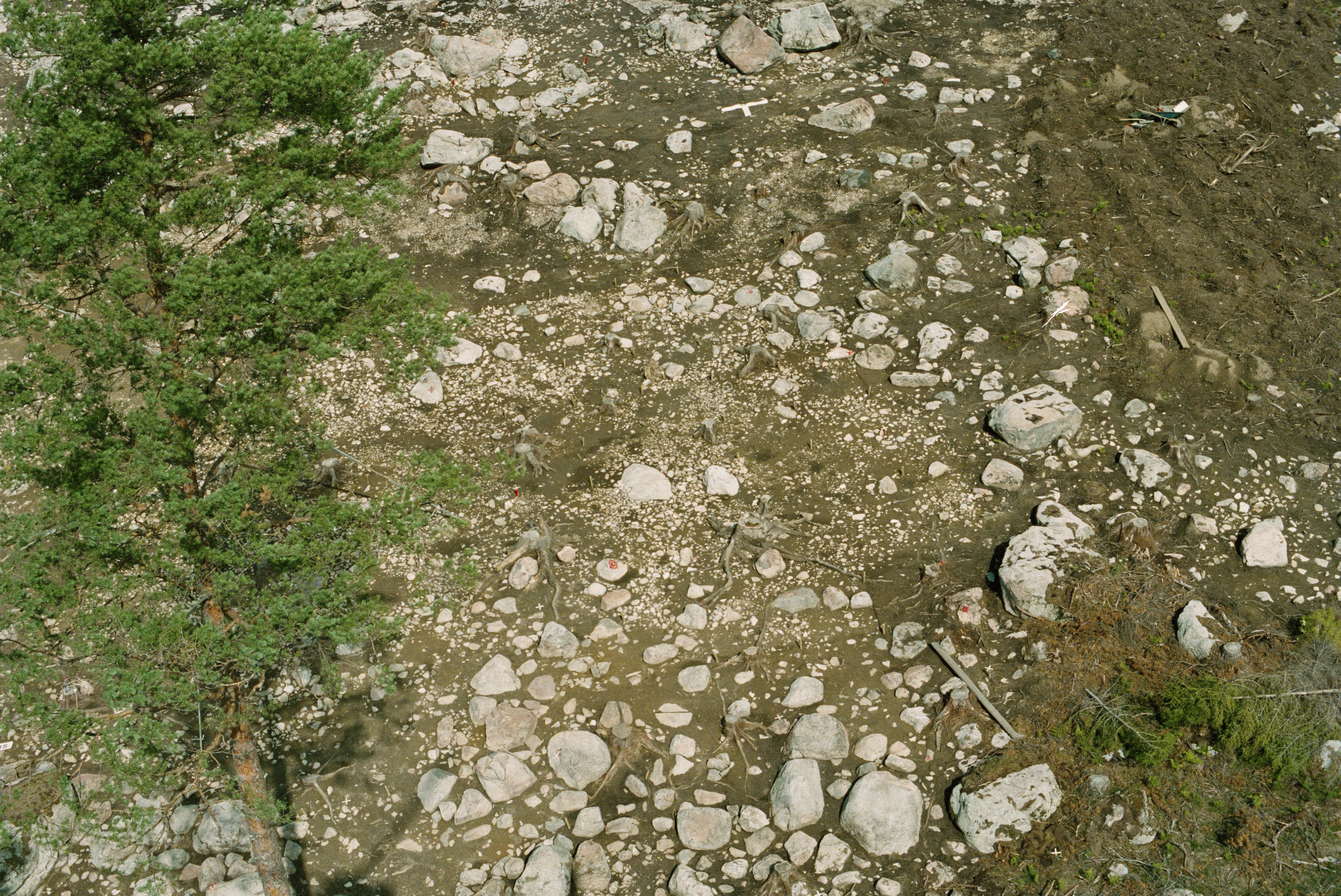 Beskrivning: Arkeologisk undersökning innan bygge av järnväg (Arlandabanan) i Rickebyåns dalgång i områden söder om Svartsjön. Fornborg Odensala 235:1, boplats Odensala 489:1, m.fl. Bilden är tagen mot (väderstreck): N