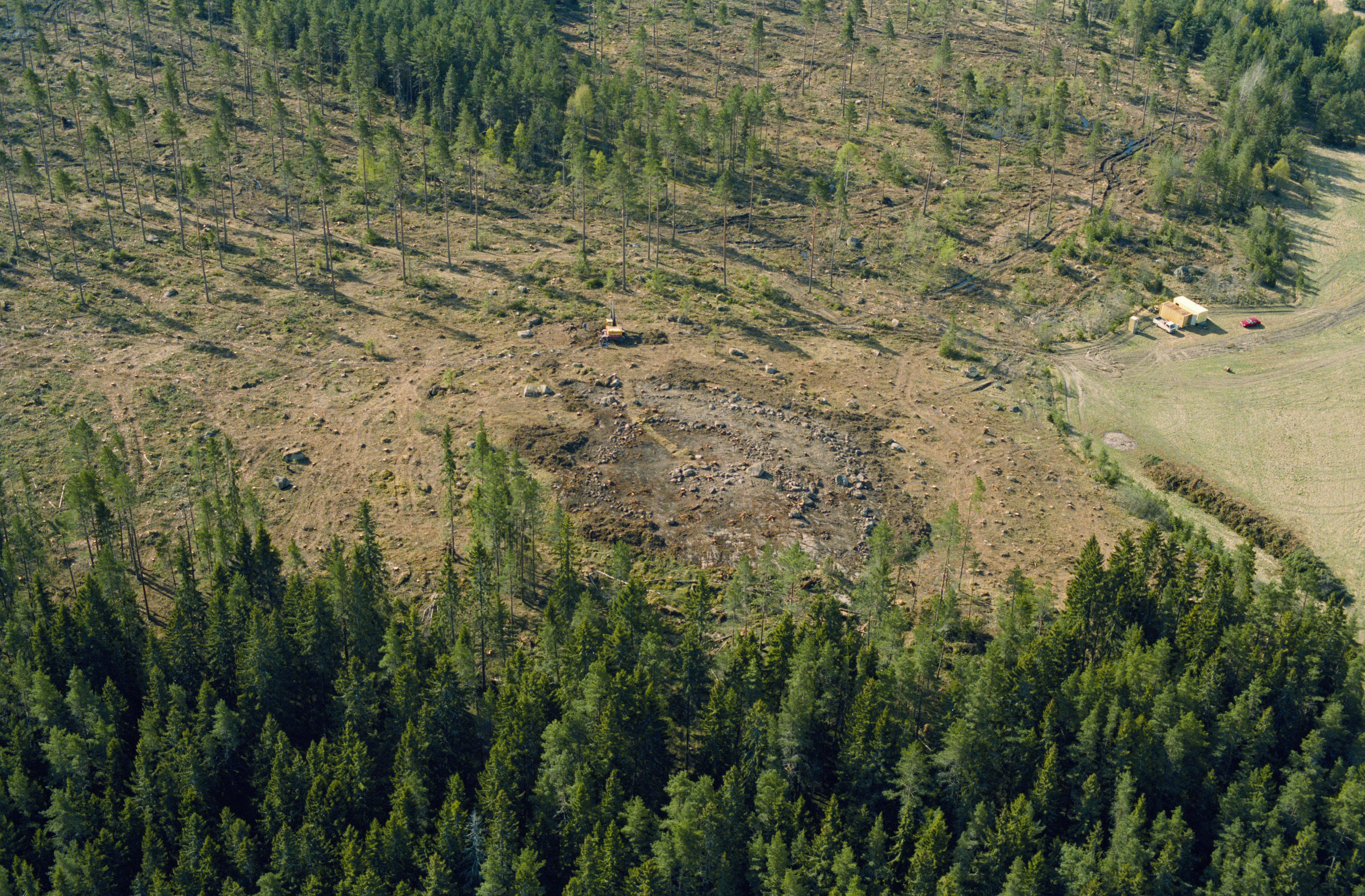 Beskrivning: Arkeologisk undersökning innan bygge av järnväg (Arlandabanan) i Rickebyåns dalgång i områden söder om Svartsjön. Fornborg Odensala 235:1, boplats Odensala 489:1, m.fl. Bilden är tagen mot (väderstreck): SV