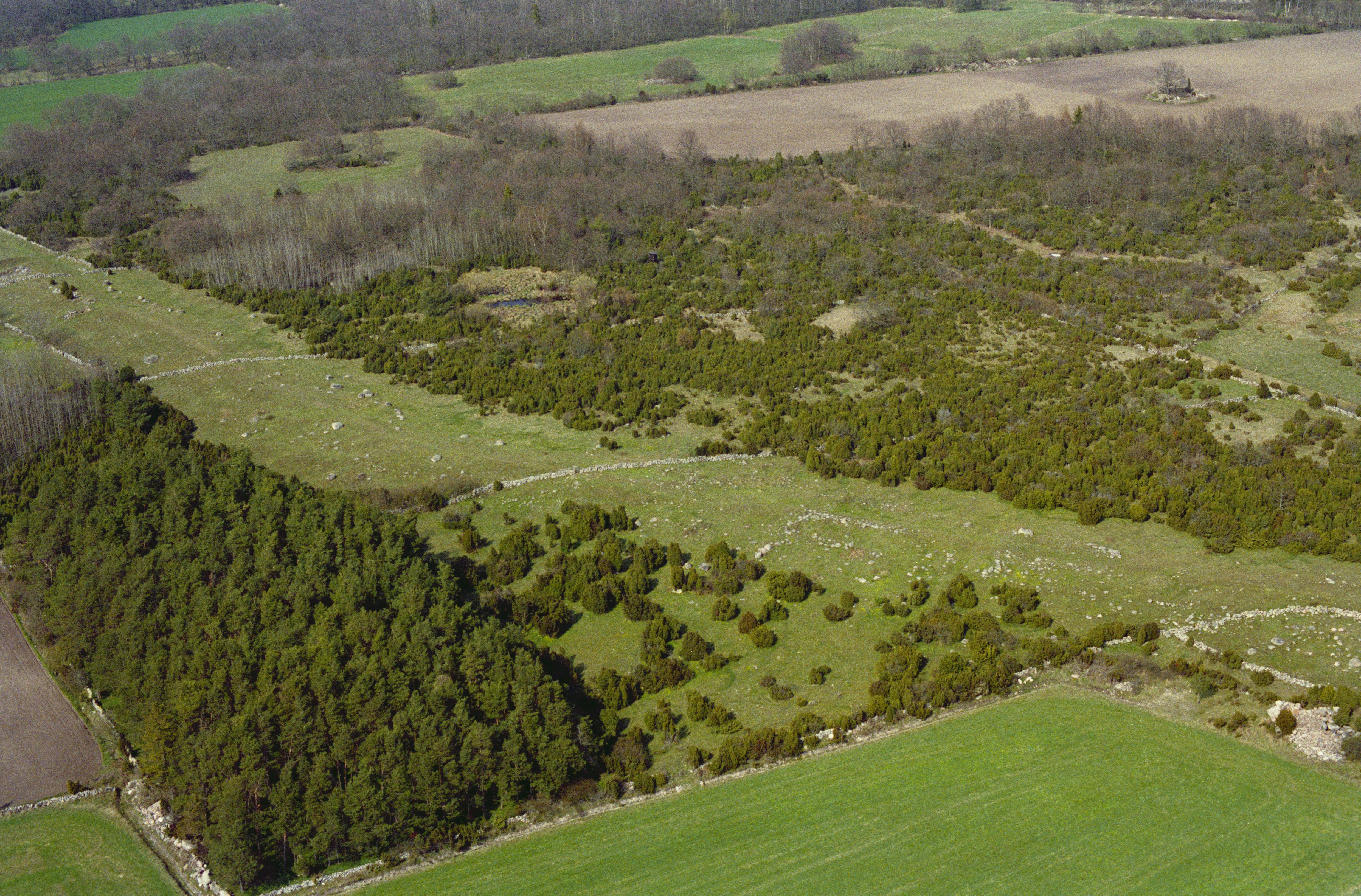 Beskrivning: Fornlämningsområde i Södra Greda. Husgrunder RAÄnr Föra 14:1, 15:1-4, 16:1, 19:1-3, stensträngar RAÄnr Föra 13:1-3 m.fl. Bilden är tagen mot (väderstreck): NO