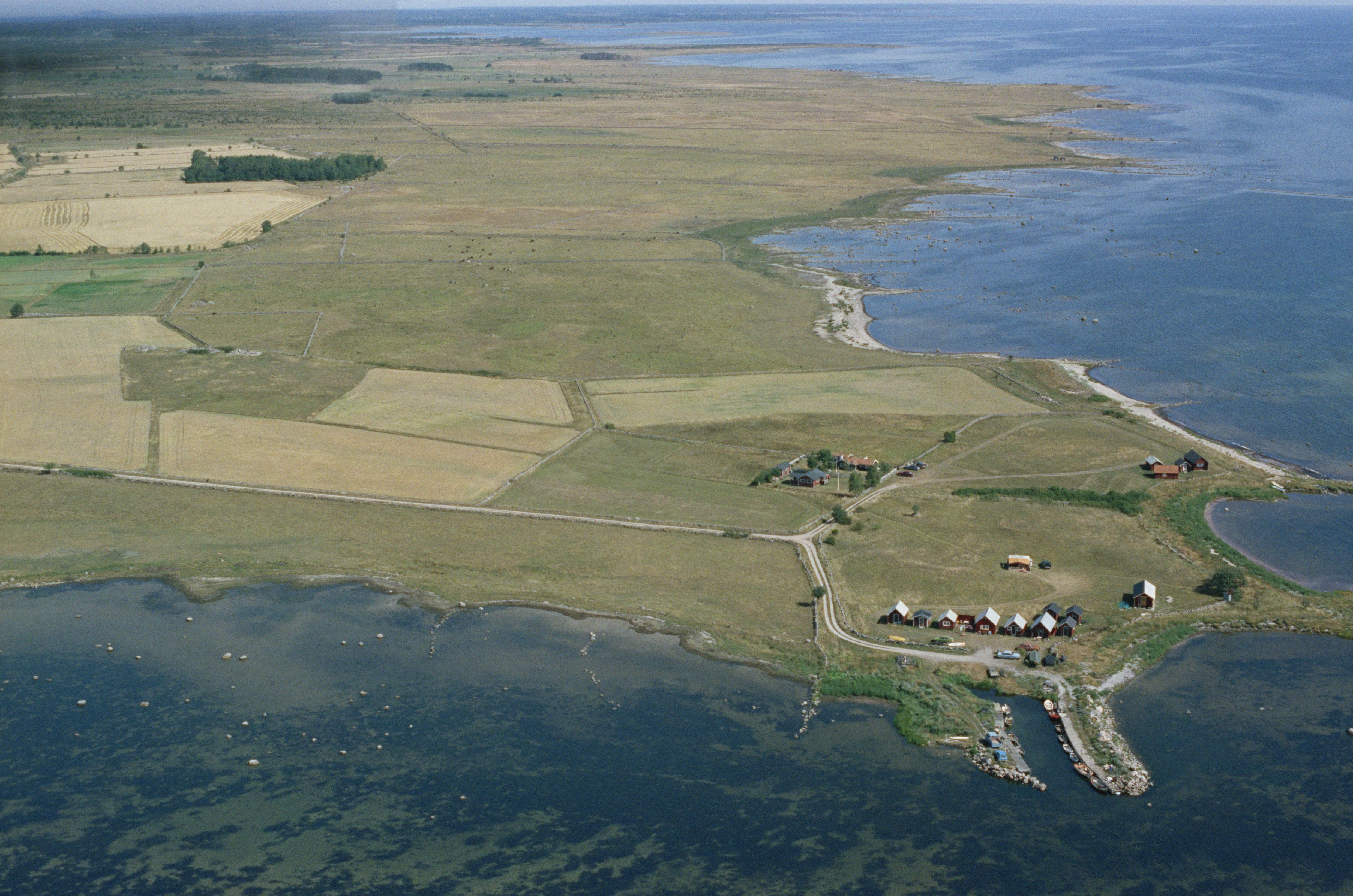 Beskrivning: Boduddens fiskeläge (skrivs även Boudden). Vid bildens mitt Jättegravarna med bl.a. hägnader RAÄnr Löt 65:12. Bilden är tagen mot (väderstreck): NV
