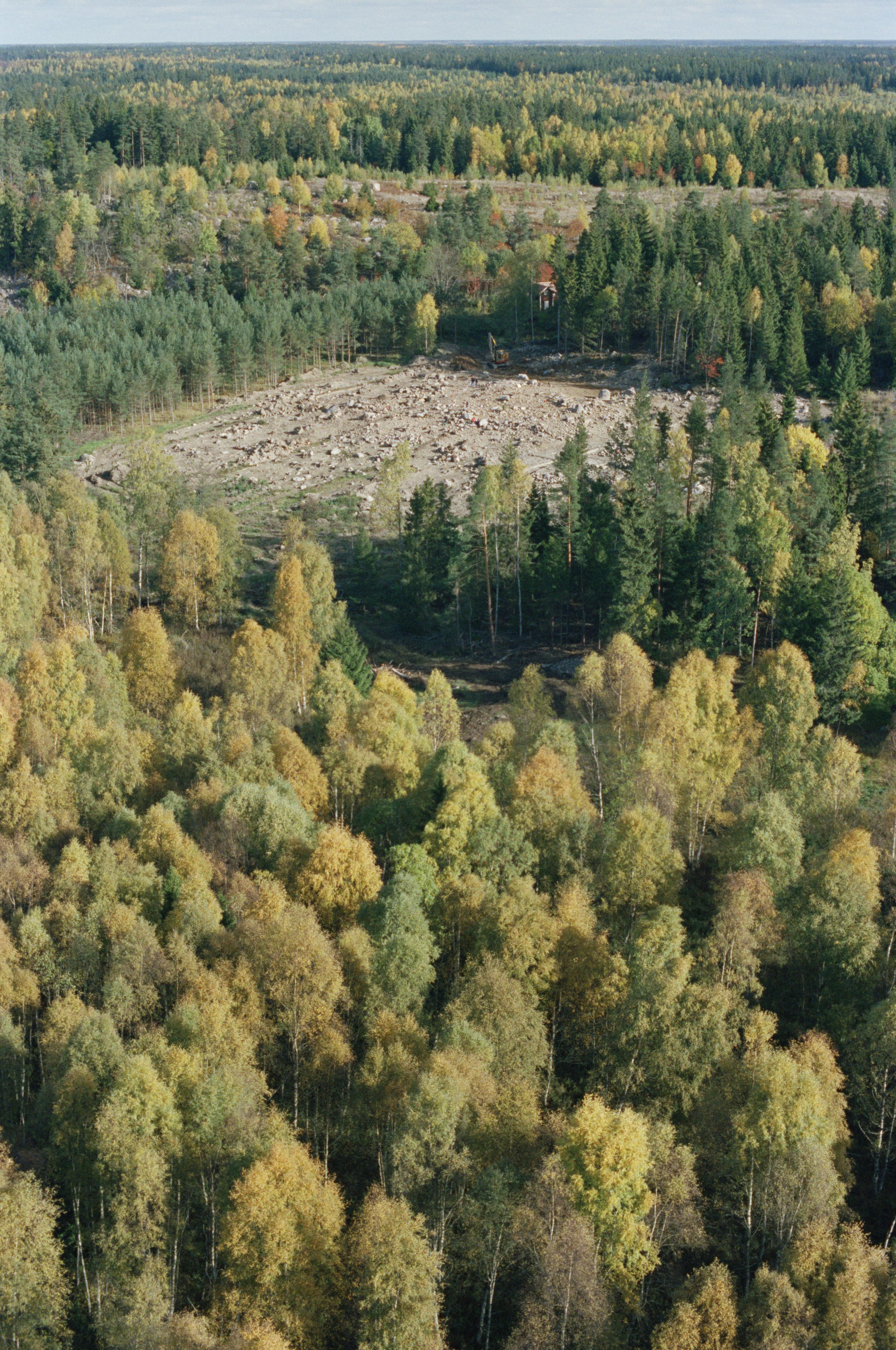 Beskrivning: Beskrivning: Rössberga innan bygge av järnväg (Arlandabanan) i Rickebyåns dalgång. Arkeologisk undersökning av boplats RAÄnr Odensala 403:1. I bildens övre kant fornborg Odensala 159:1. Bilden är tagen mot (väderstreck): NO Fotosyfte: Flygbildsdokumentation