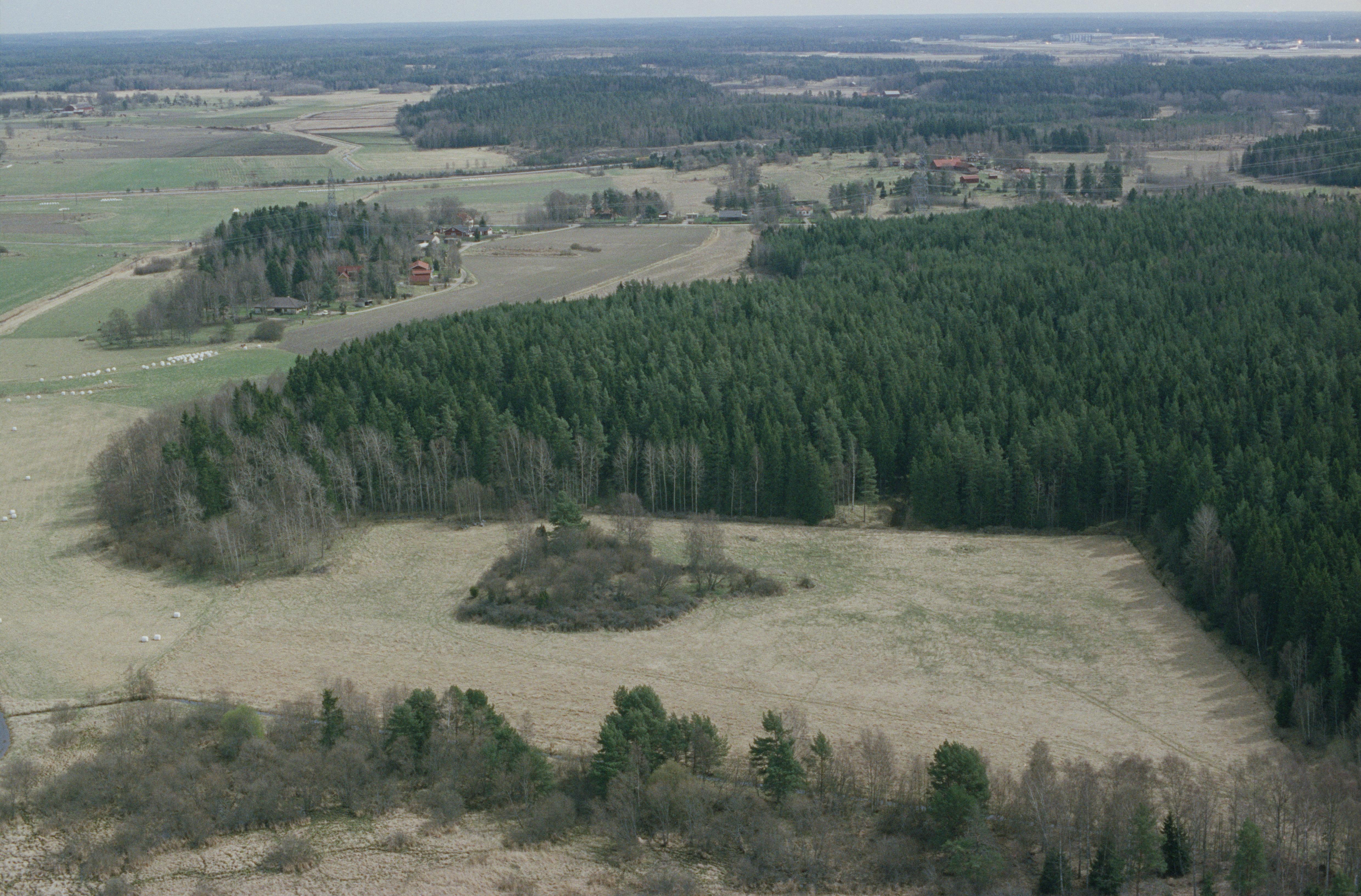 Beskrivning: Beskrivning: Rickebyåns dalgång i östra delen av Svartsjön, norr om Sjötorpet. Vid bildens mitt hägnad RAÄnr Odensala 388:1. Byn Hagalund till vänster över bildens mitt, och Åslunda uppe till höger. Bilden är tagen mot (väderstreck): Ö Fotosyfte: Flygbildsdokumentation