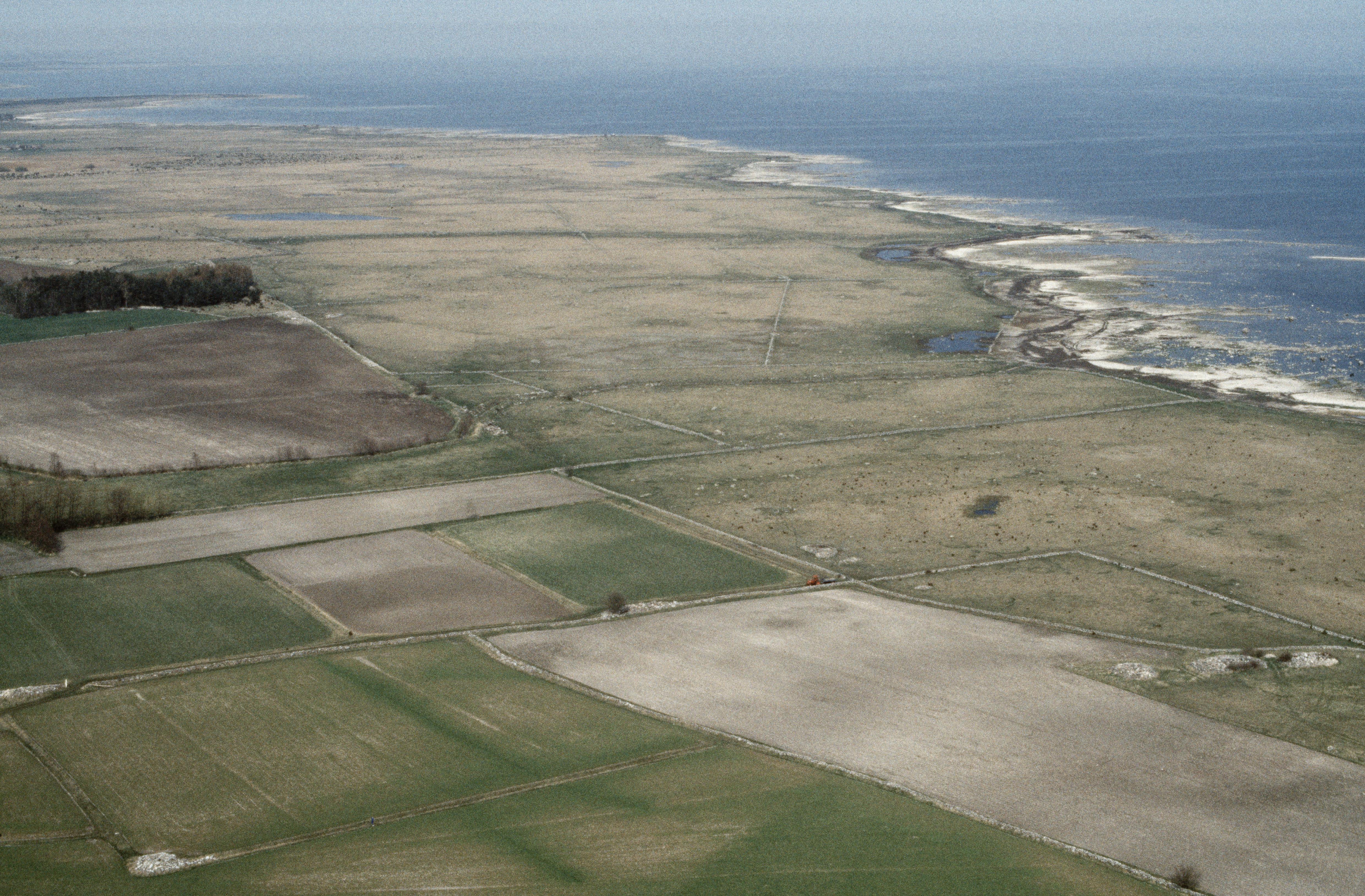 Beskrivning: Vid Bodudden. I bildens mitt stenkrets Löt 17:1 och stensättningar och rösen Löt 14:1-3. Jättegravarna med hägnader RAÄnr Löt 65:12 m.fl. i bildens övre del. Bilden är tagen mot (väderstreck): NO