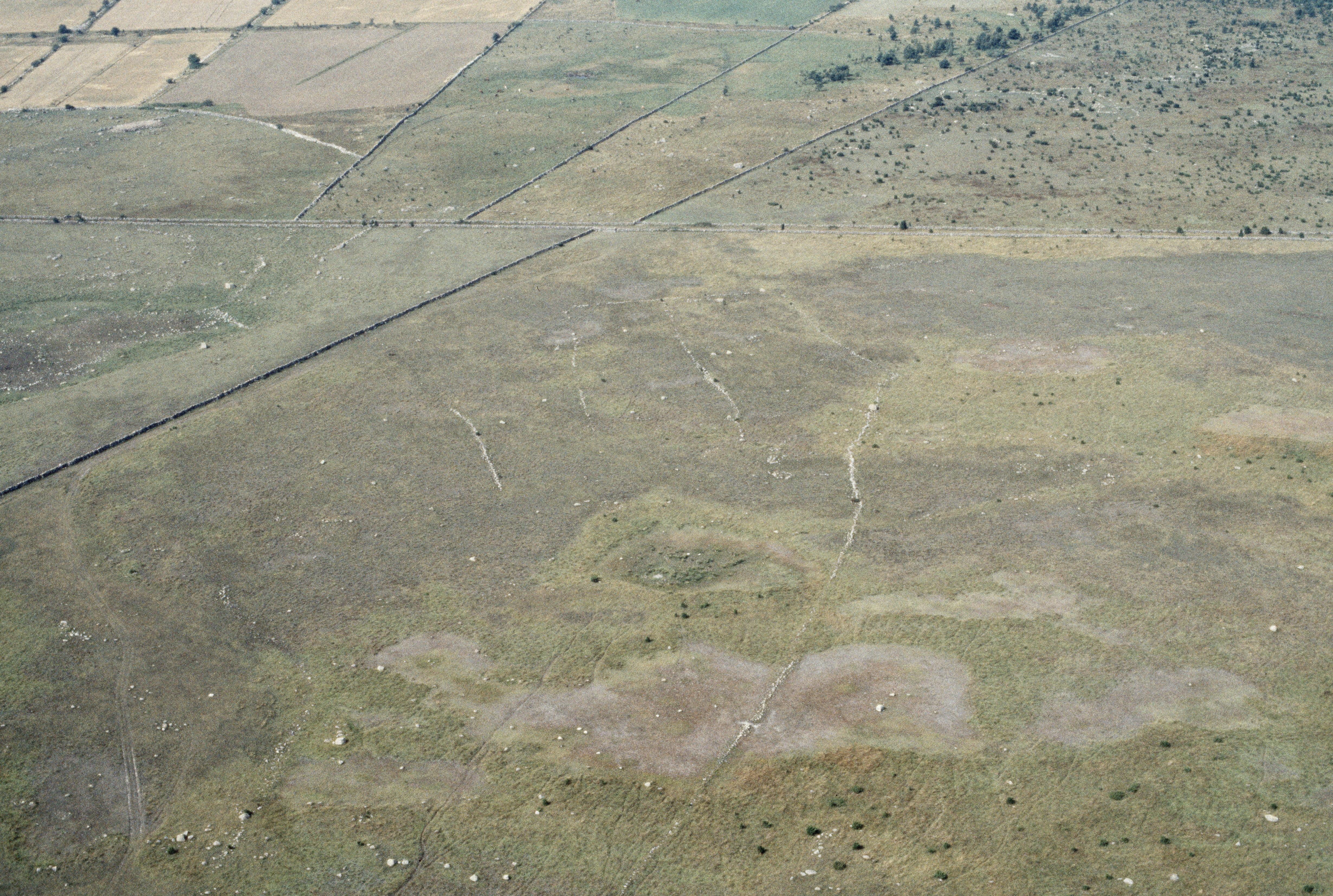 Beskrivning: Jättegravarna. Hägnadssystem Löt 65:12 och gravfält RAÄnr Löt 19:1 uppe till vänster. Bilden är tagen mot (väderstreck): NO