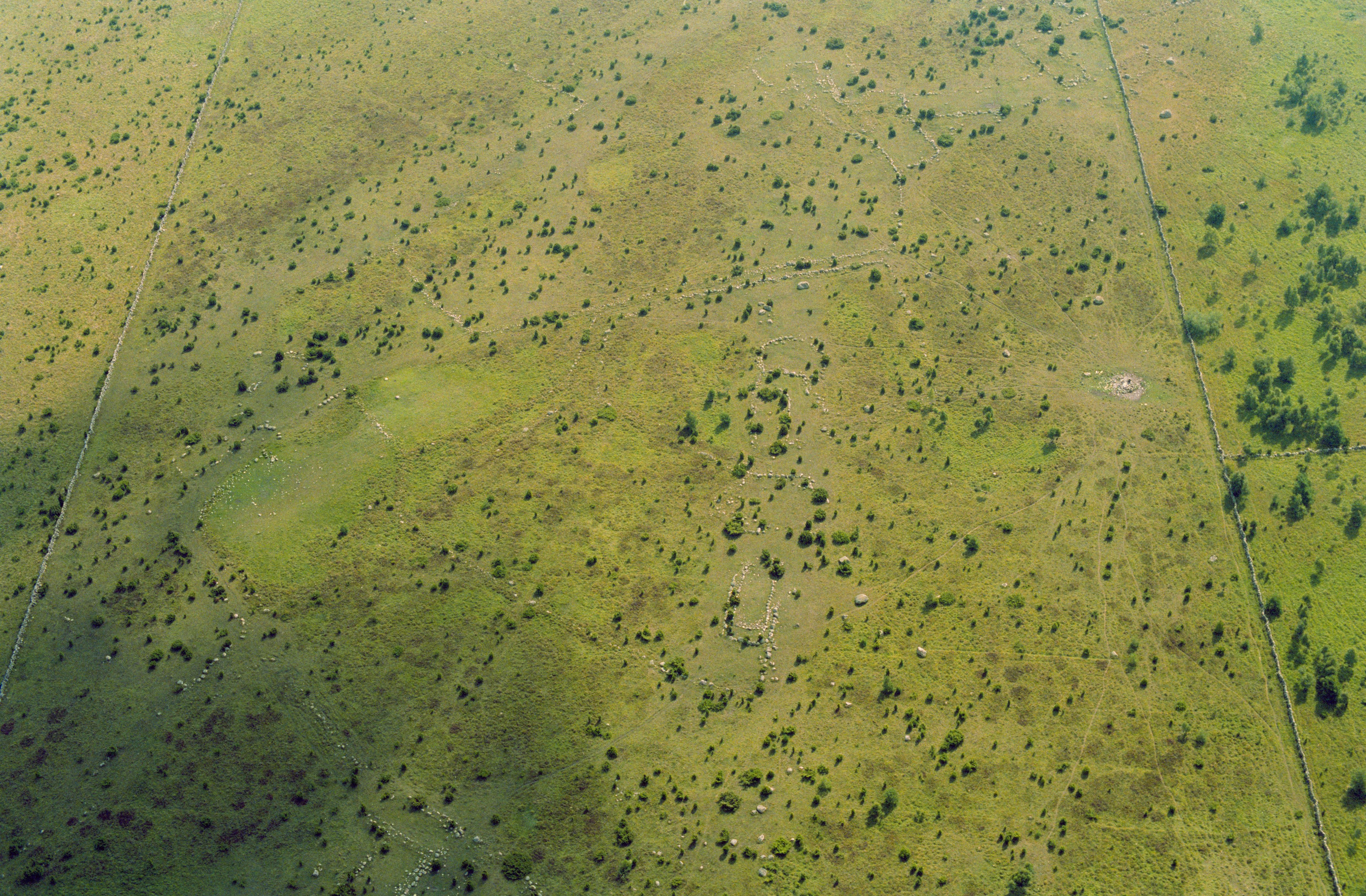 Beskrivning: Jättegravarna vid Slatekärr. Hägnadssystem RAÄnr Löt 65:12 och husgrunder RAÄnr Löt 65:4, 65:5, 65:6, 65:8, 65:9 m.fl. Bilden är tagen mot (väderstreck): SO