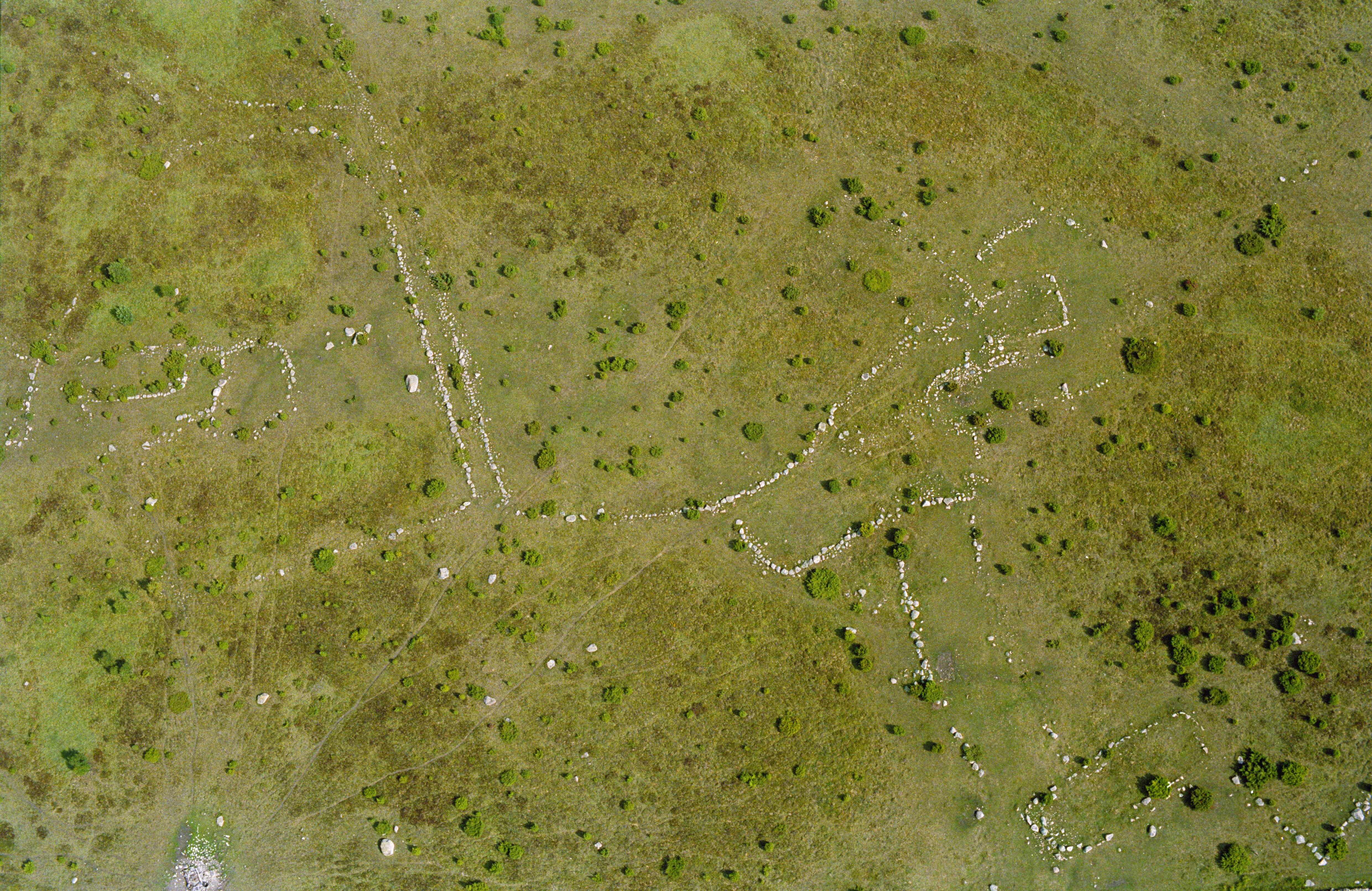 Beskrivning: Jättegravarna vid Slatekärr. Hägnadssystem RAÄnr Löt 65:12 och husgrunder RAÄnr Löt 65:5 (till vänster) och Löt 65:6 m.fl. Bilden är tagen mot (väderstreck): NO