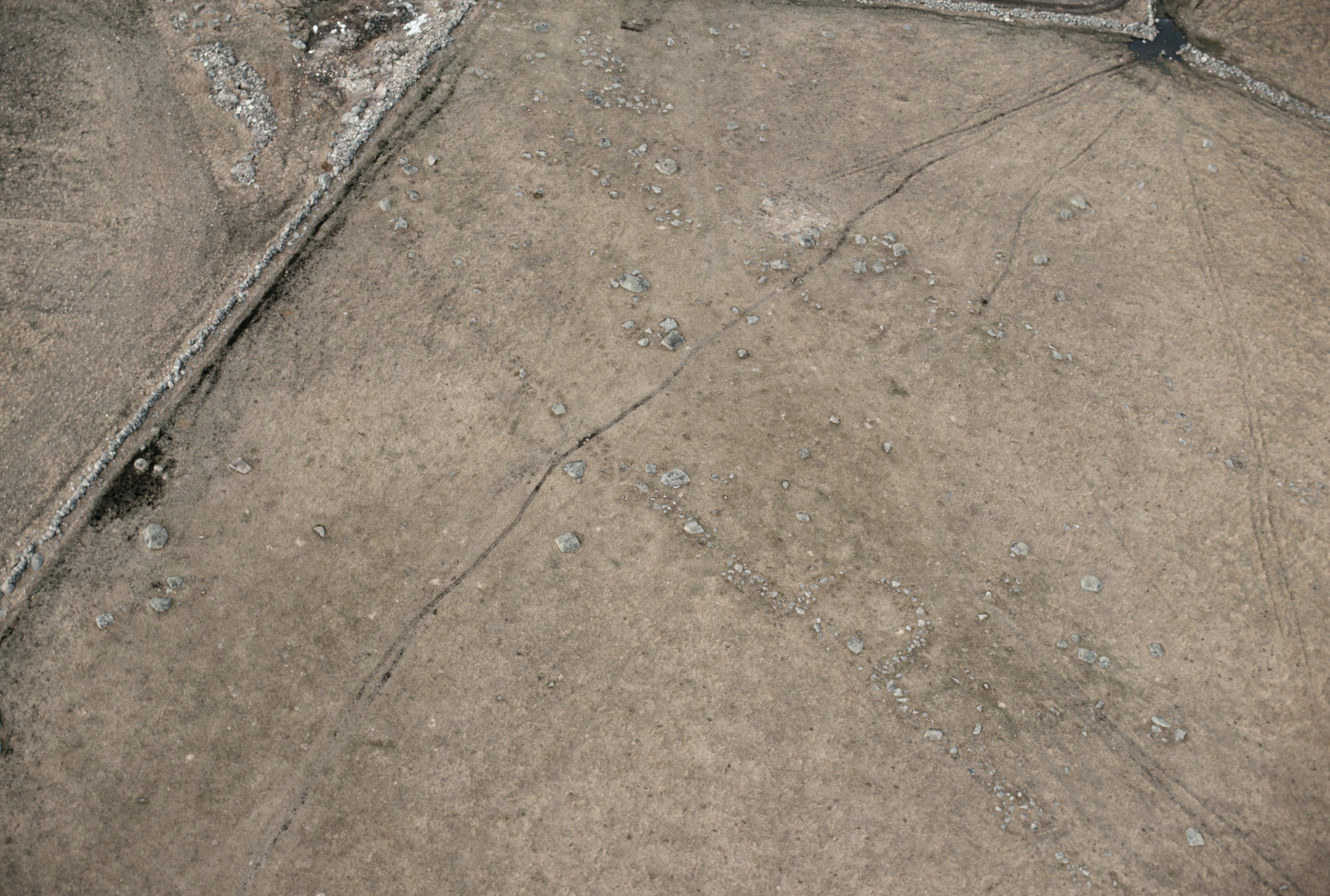 Beskrivning: Jättegravarna, södra delen. Hägnadssystem och husgrund RAÄnr Löt 18:2. Bilden är tagen mot (väderstreck): N