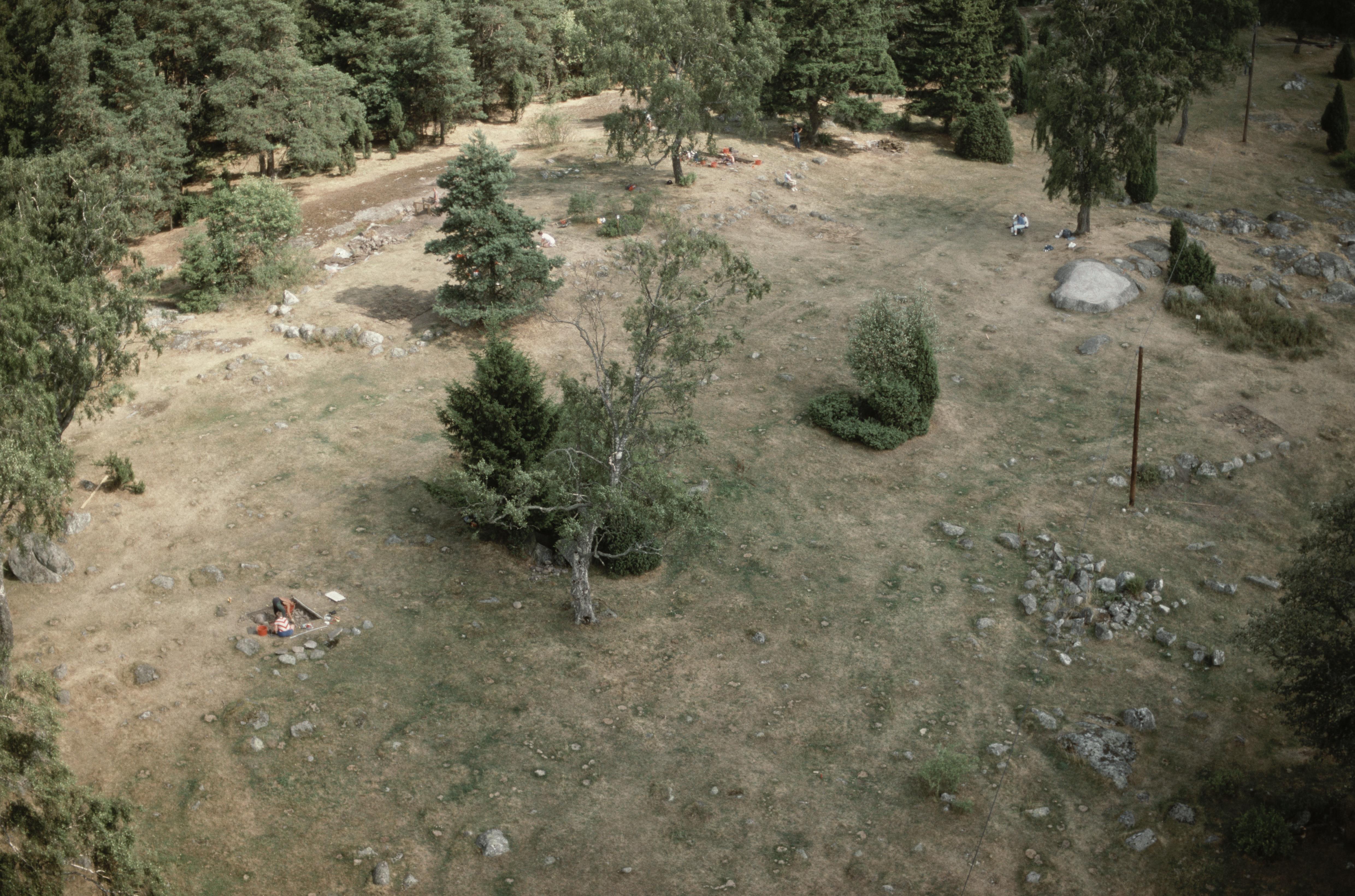 Beskrivning: Arkeologisk undersökning av boplats Hyppinge gamla tomt med runristning, stensättningar RAÄnr Orkesta 25:1, 44:1, 45:1-2, 157 m.fl. Bilden är tagen mot (väderstreck): ONO
