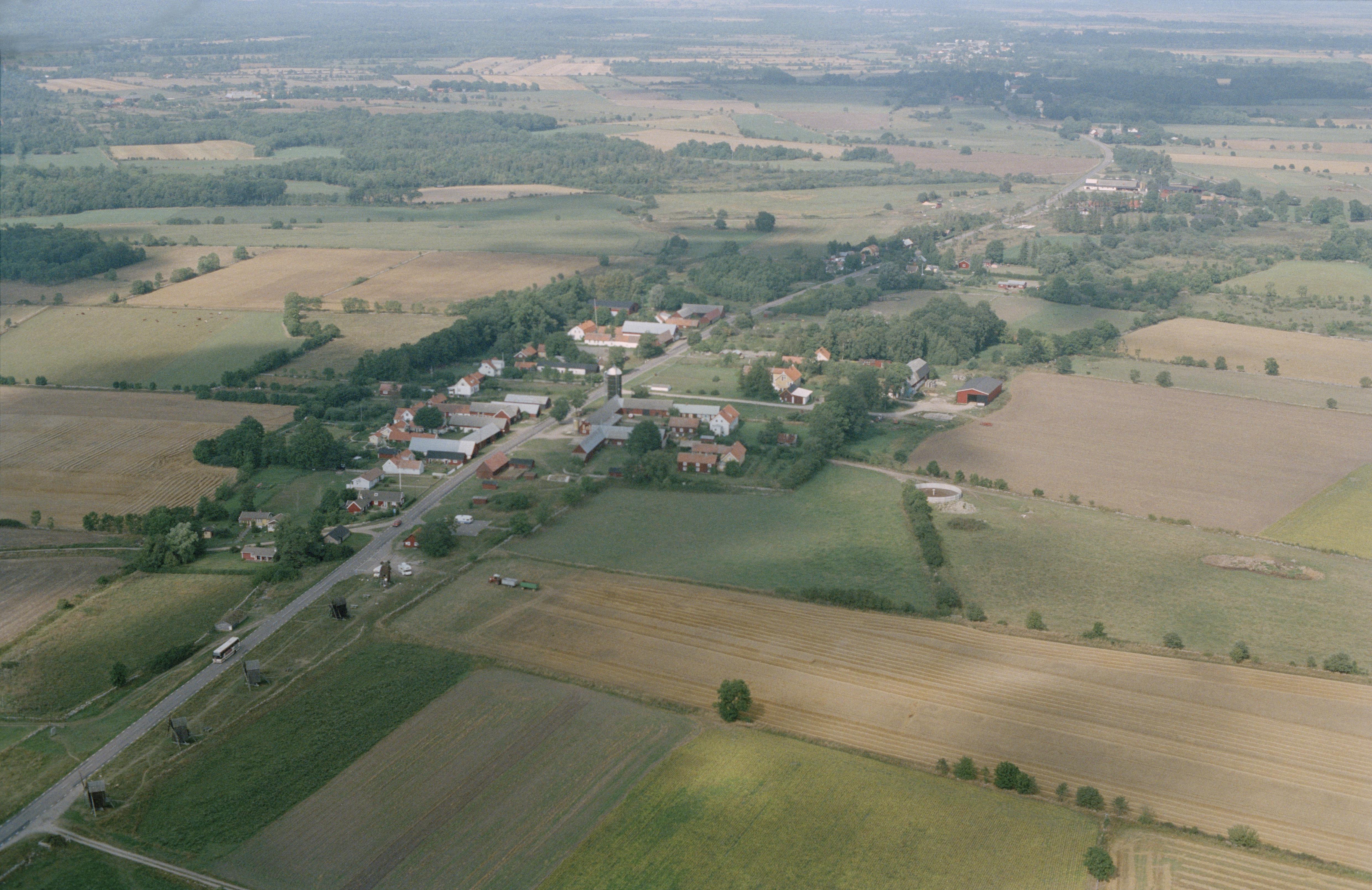 Beskrivning: Lerkaka by. Nere till höger boplats RAÄnr Runsten 222:1. Bilden är tagen mot (väderstreck): N