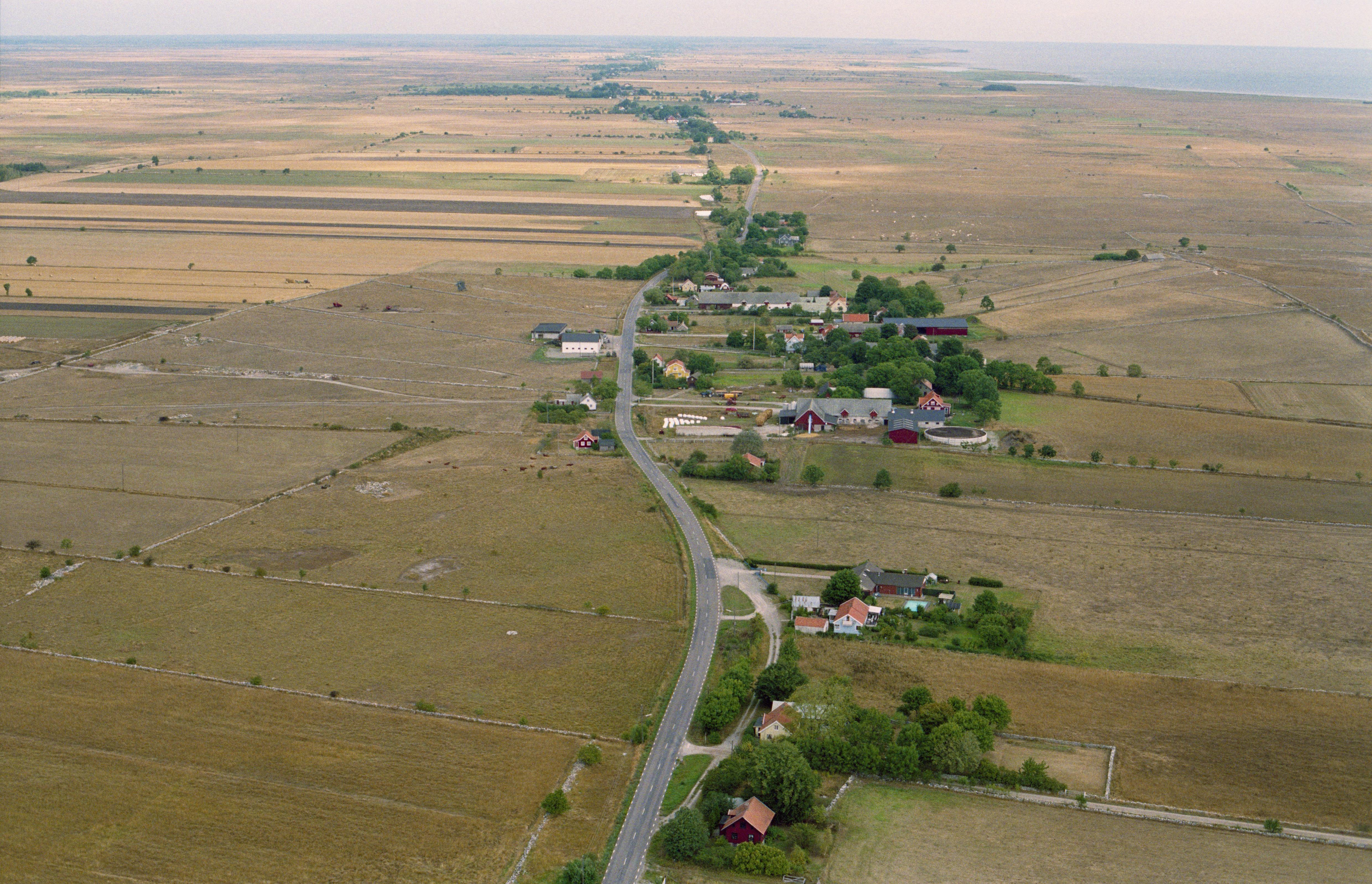 Beskrivning: Anmärkning (övrig): Riksintresse-nr/namn: H4 - Gräsgård - Segerstad. Socken: Gräsgård och Segerstad socknar. Motivering: Öppet öländskt odlingslandskap med bebyggelse och lämningar efter odling från förhistorisk tid till nutid samt Gräsgårds välbevarade fiskeläge. (Fornlämningsmiljö, Sockencentrum). - Uttryck för riksintresset: I sydväst stråk av husgrunder från järnåldern. Norr om Seby stort, varierat järnåldersgravfält, ett av öns största, vid Träby trerummig fornborg. Radbyar i laga läge med malmbebyggelse. Sammanhållen bebyggelsemiljö kring Gräsgårds kyrka med bla prästgårdsbyggnader i kalksten och fd skola. Genomförda skiften i in- och utägomark kan avläsas genom den struktur stenmurarna ger landskapet. G(…) Texten i detta fält har förkortats vid migrering till e-arkivet. Se filbilagan extra.xml för fullständig information under note_archivist. Beskrivning: Alvaret, södra delen vid gränsen mellan socknen Segerstad och Gräsgård. Bilden är tagen mot (väderstreck): N Fotosyfte: Flygbildsdokumentation