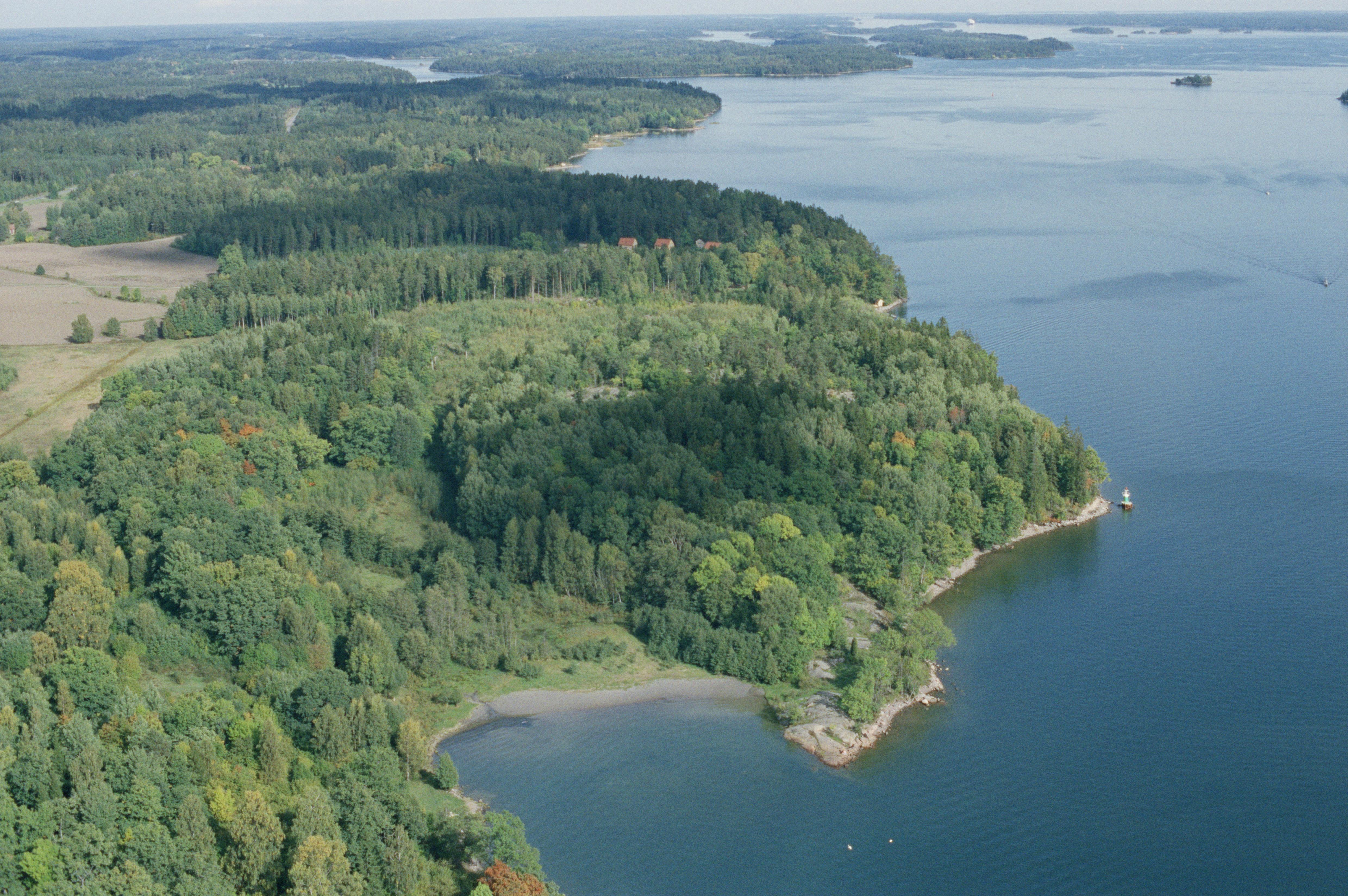 Beskrivning: Vid bildens mitt vårdkase Kasen RAÄnr Roslags-Kulla 42:1 på Staboudd / Stavberget. Bilden är tagen mot (väderstreck): NO