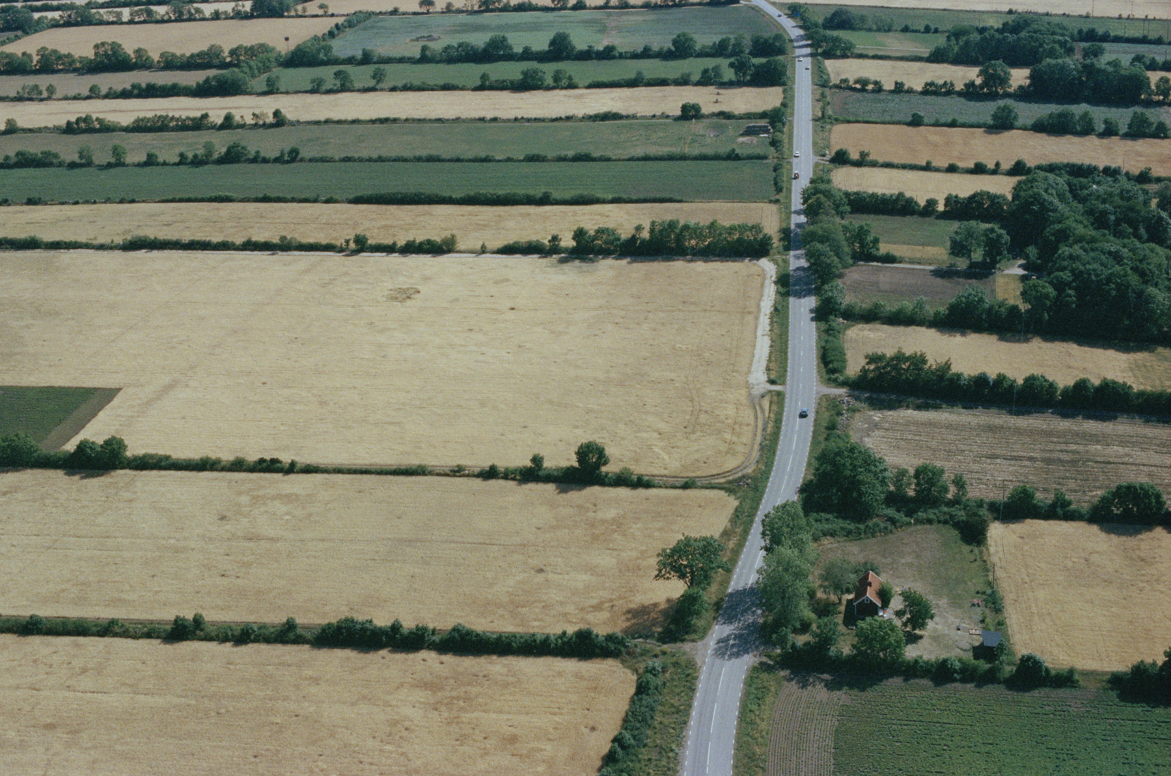 Beskrivning: Boplats RAÄnr Torslunda 185:1 (fastighet Björnhovda 9:16) vid bildens mitt. Bilden är tagen mot (väderstreck): S