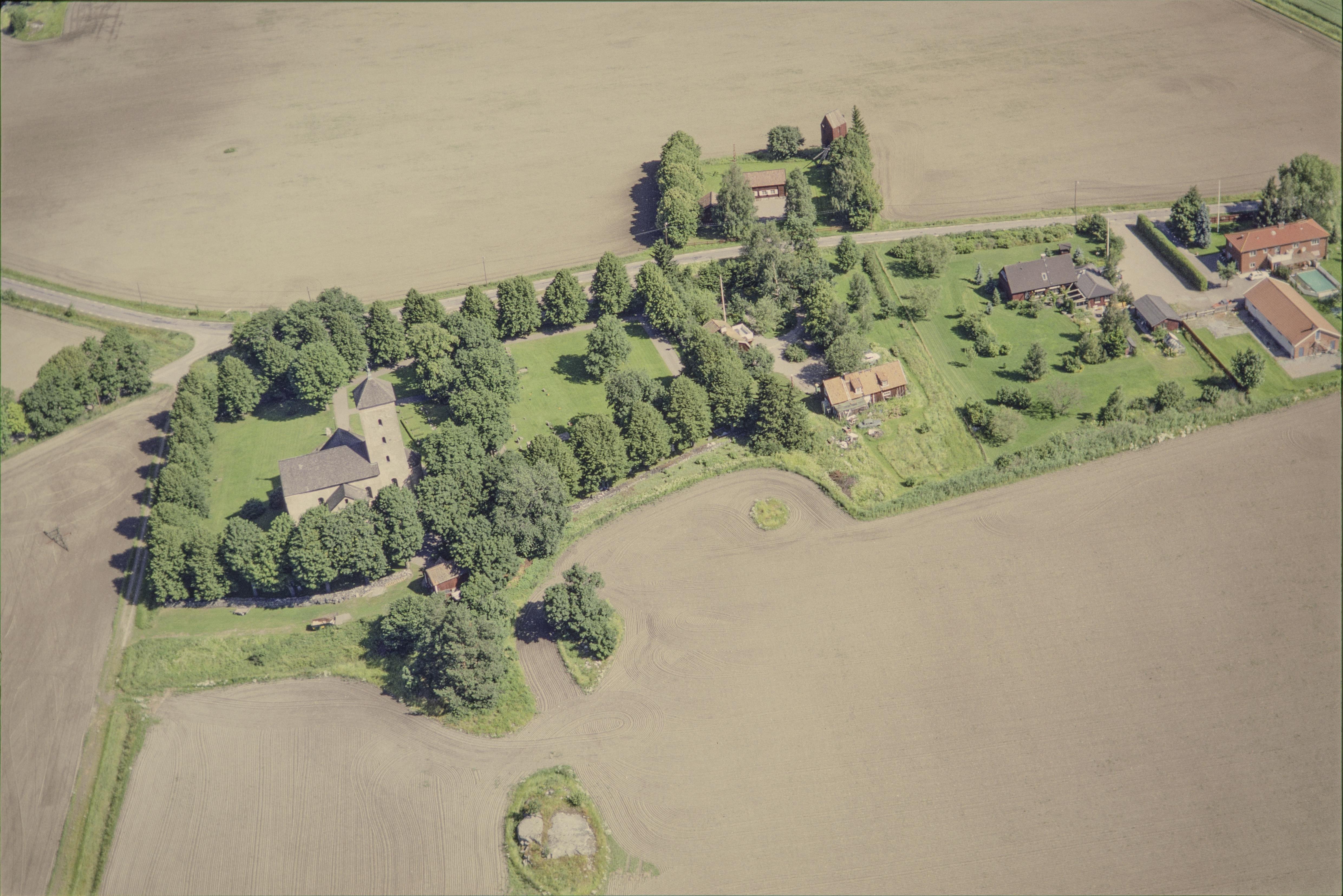 Beskrivning: Skånela kyrka, Klockaregård och hembygdsmuseum. Bilden är tagen mot (väderstreck): N