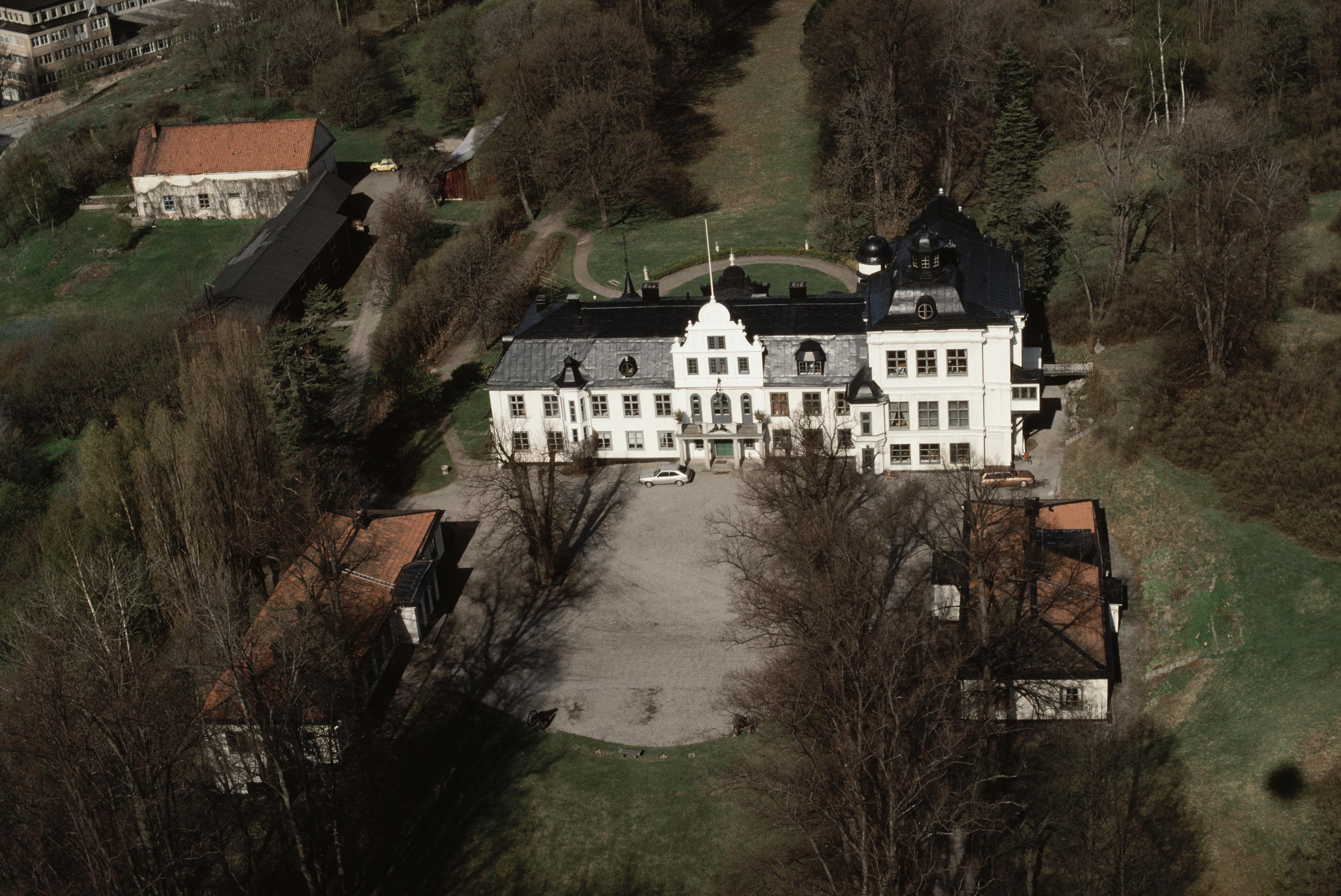Beskrivning: Stora Frösunda herrgård vid bildens mitt. Vid herrgården står runsten RAÄnr Solna 23:1. Bilden är tagen mot (väderstreck): VNV