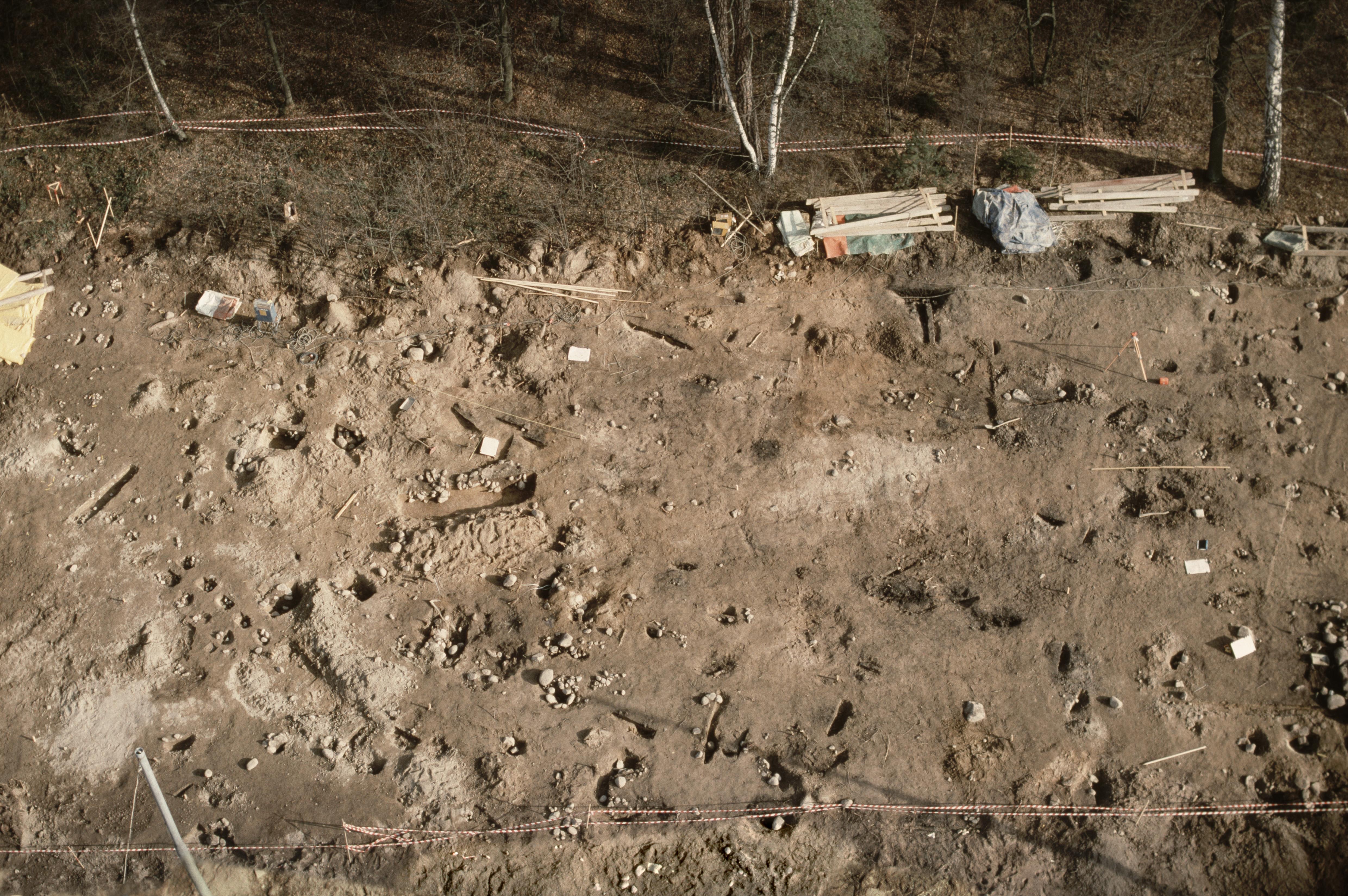 Beskrivning: Anmärkning (övrig): Riksintresse-nr/namn: AB37 - Solna. Socken: Solna. Motivering: A. Sockencentrum för den stora Solna socken, som ursprungligen innefattade hela nuvarande Stockholms innerstad, framför allt präglat av 1100-talets rundkyrka med senare tillbyggnader och tillhörande bebyggelse från främst 1700-talet. - B. Haga - Ulriksdals kungliga slottsmiljöer med lustslott och stora parkanläggningar med nära vattenkontakt, som i sin utveckling framför allt speglar stormaktstiden, den gustavianska epoken och 1800-talets första hälft. Miljöerna har ett nära samband med ett större område dominerat av kungarna och staten. - C. Norra begravningsplatsen, invigd 1827, som i planering och anläggningar visar begravnin(…) Texten i detta fält har förkortats vid migrering till e-arkivet. Se filbilagan extra.xml för fullständig information under note_archivist. Beskrivning: Arkeologisk undersökning vid väg E4 mellan Norra begravningsplatsen och Hagaparken. Boplats RAÄnr Solna 85:1. Bilden är tagen mot (väderstreck): NO Fotosyfte: Flygbildsdokumentation