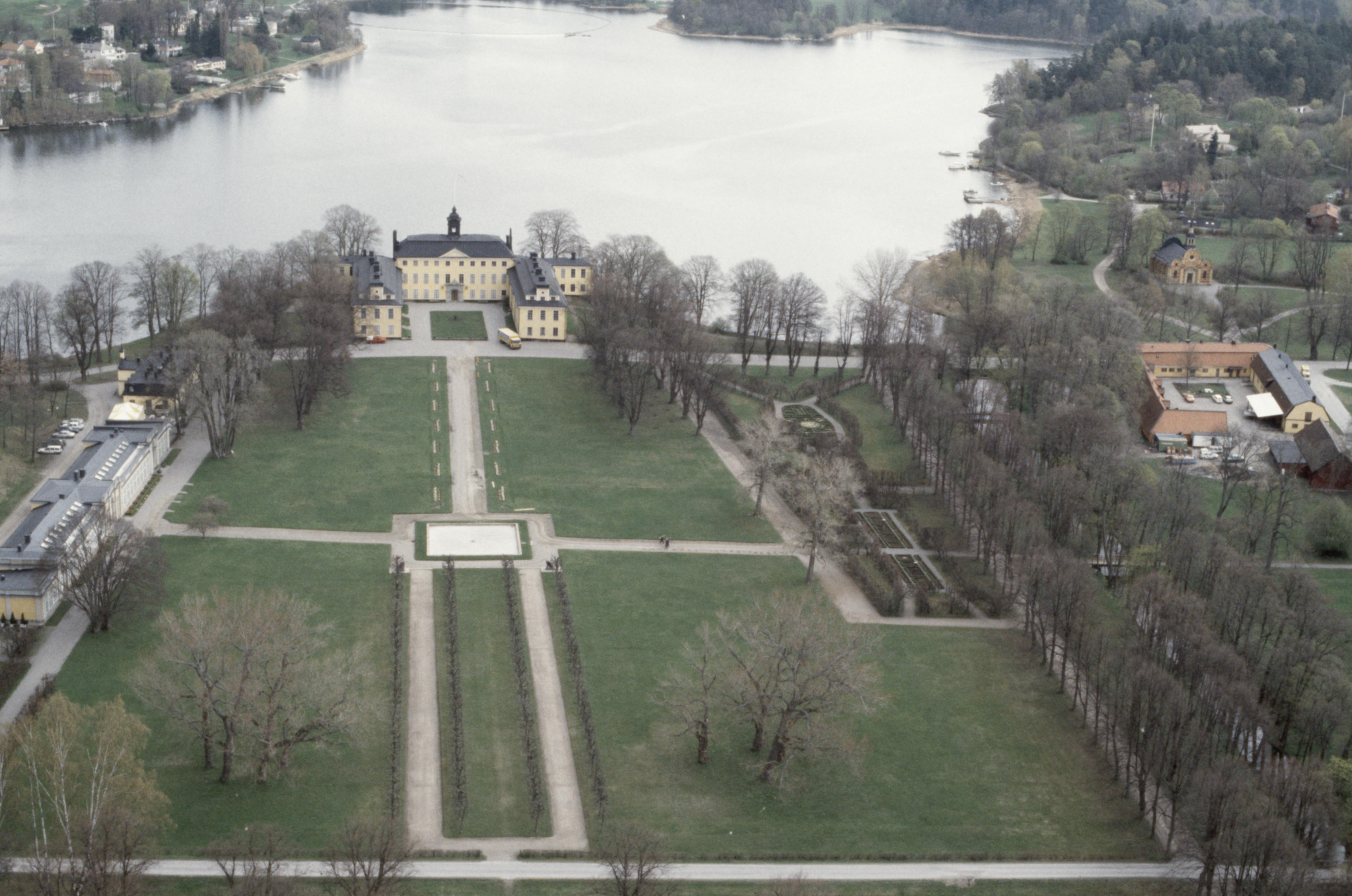 Beskrivning: Ulriksdals slott, statligt byggnadsminne RAÄnr Solna 32:1 vid Igelbäckens utlopp i Edsviken. Bilden. Bilden är tagen mot (väderstreck): ONO