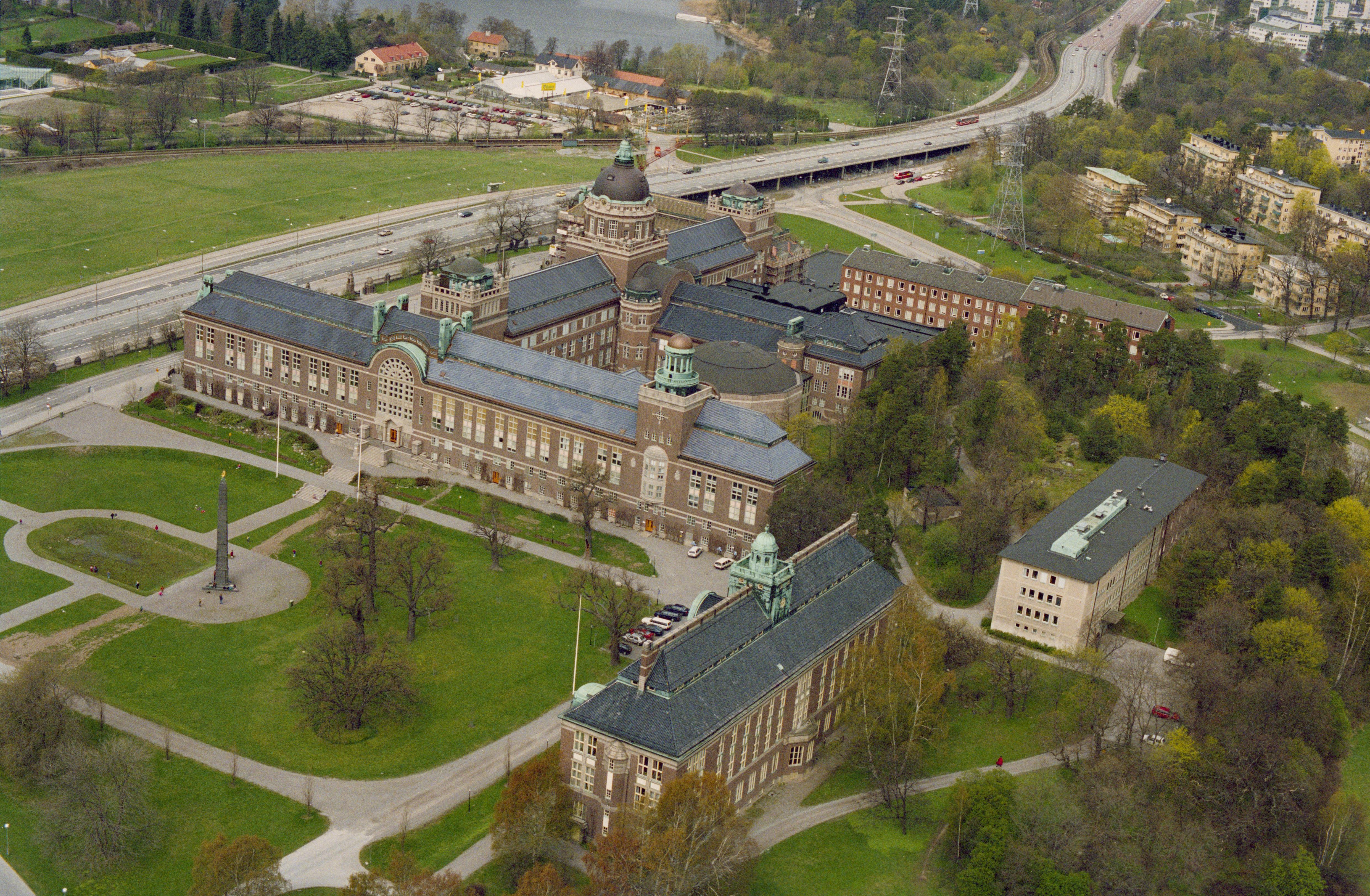 Beskrivning: Naturhistoriska riksmuseet statligt byggnadsminne RAÄnr Stockholm 98:1 i norra delen av Brunnsviken. I bildens övre del Bergianska trädgården i området Frescati. Bilden är tagen mot (väderstreck): NV
