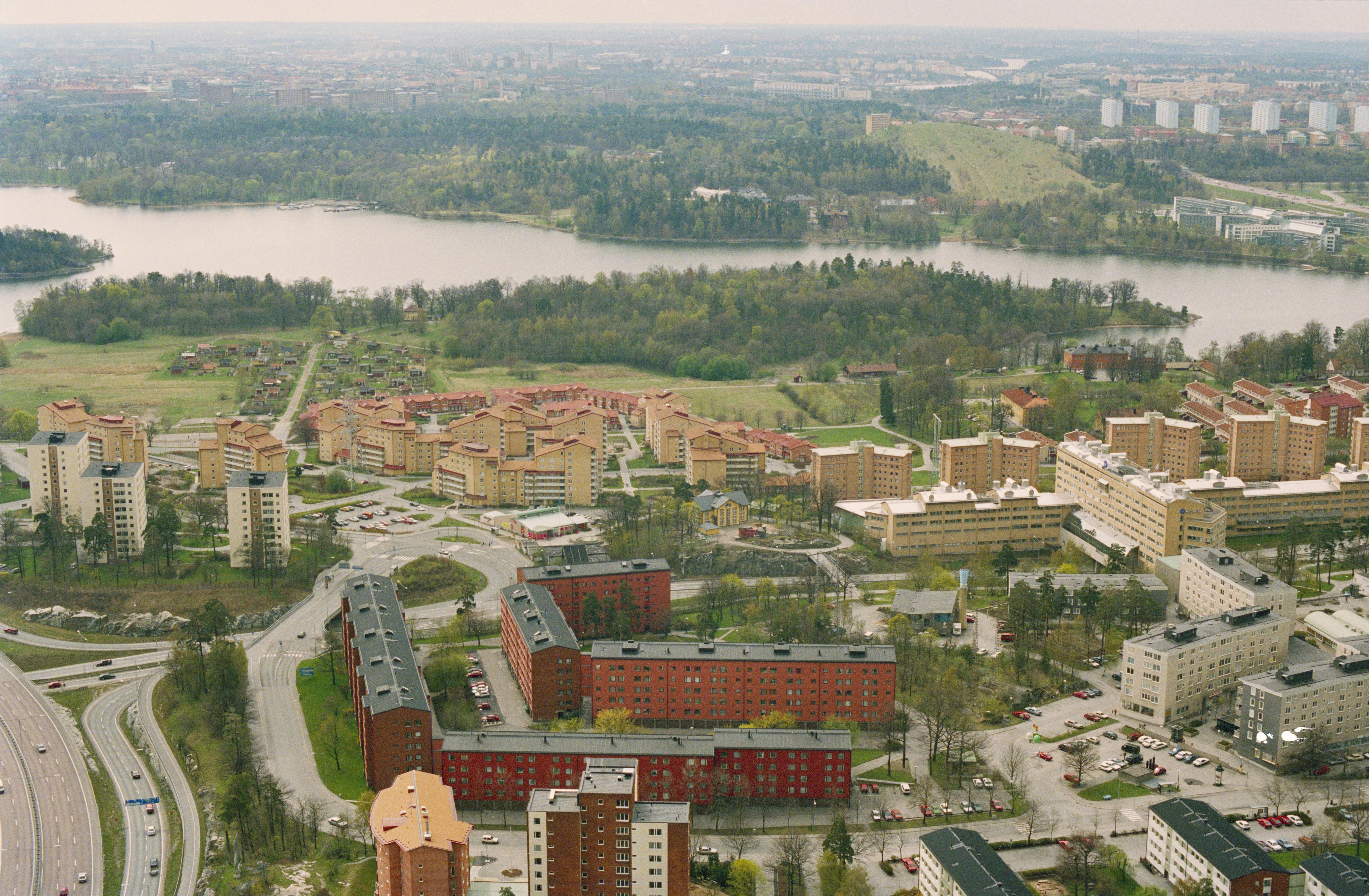Beskrivning: Stadsdelen Bergshamra i Solna vid Brunnsviken. Vid bildens mitt Tivoliudden och byggnaderna Statens Växtskyddsanstalt, på Pipersvägen. I bildens övre del Haga slott, Frösundavik och Stockholms stad. Bilden är tagen mot (väderstreck): S