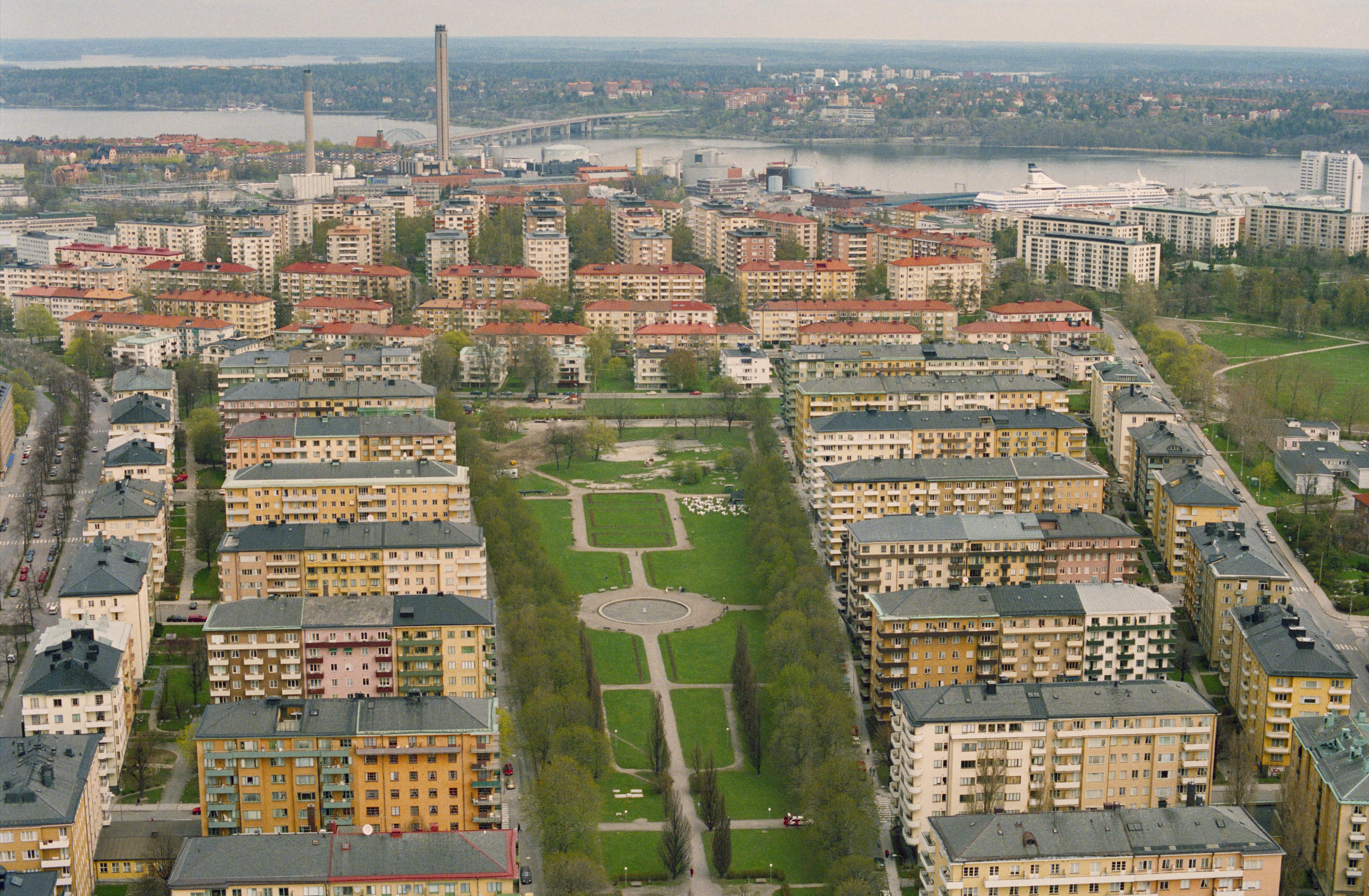 Beskrivning: Gärdet. Tessinparken, Gärdesstaden mot Värtahamnen. Bilden är tagen mot (väderstreck): NNO