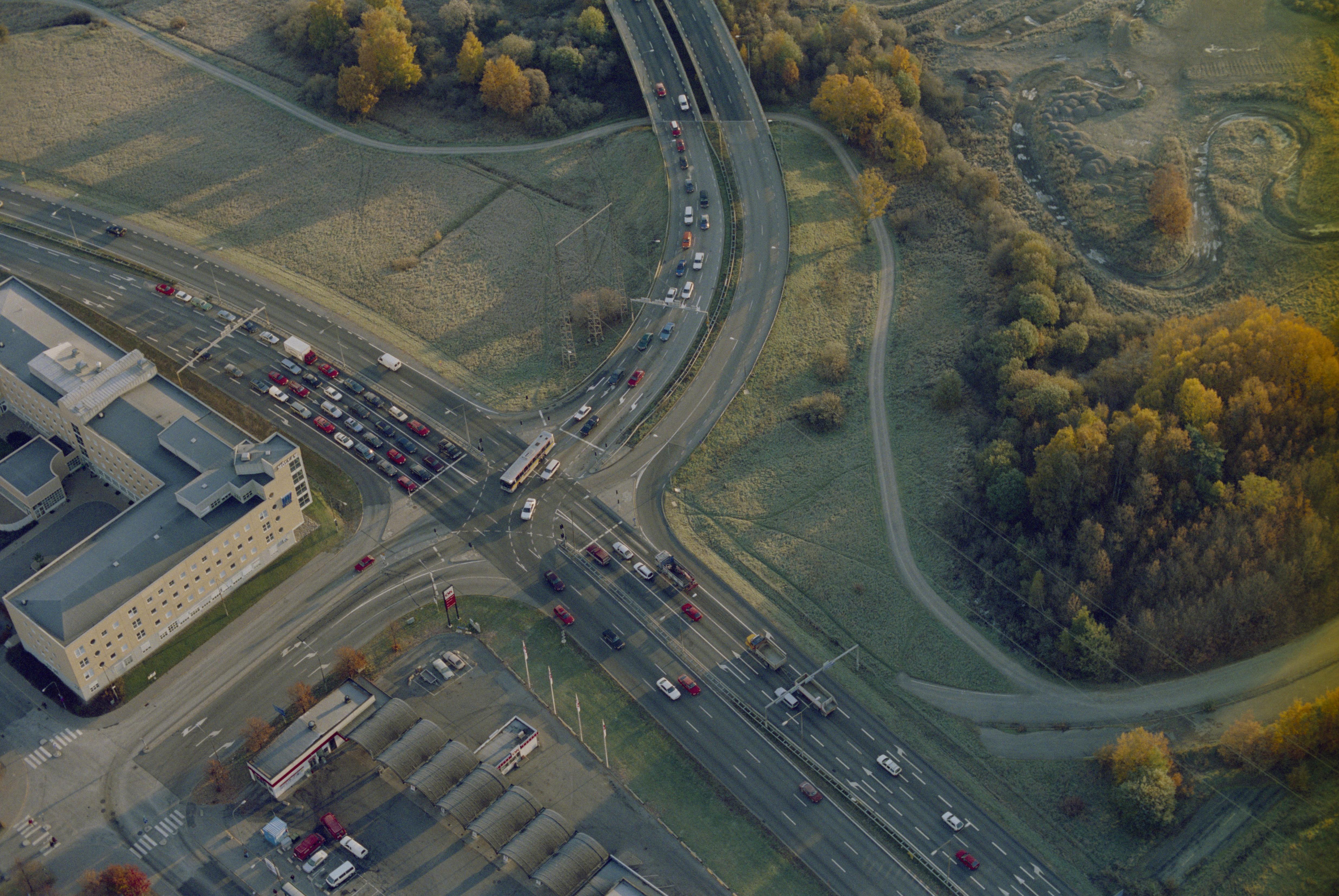 Beskrivning: Området Rinkeby vid Ulvsundavägen som markerar gränsen mot socknet Stockholm (nere till höger). Vid Rinkebymotet i bildens mitt hägnad RAÄnr Stockholm 782. Bilden är tagen mot (väderstreck): ONO