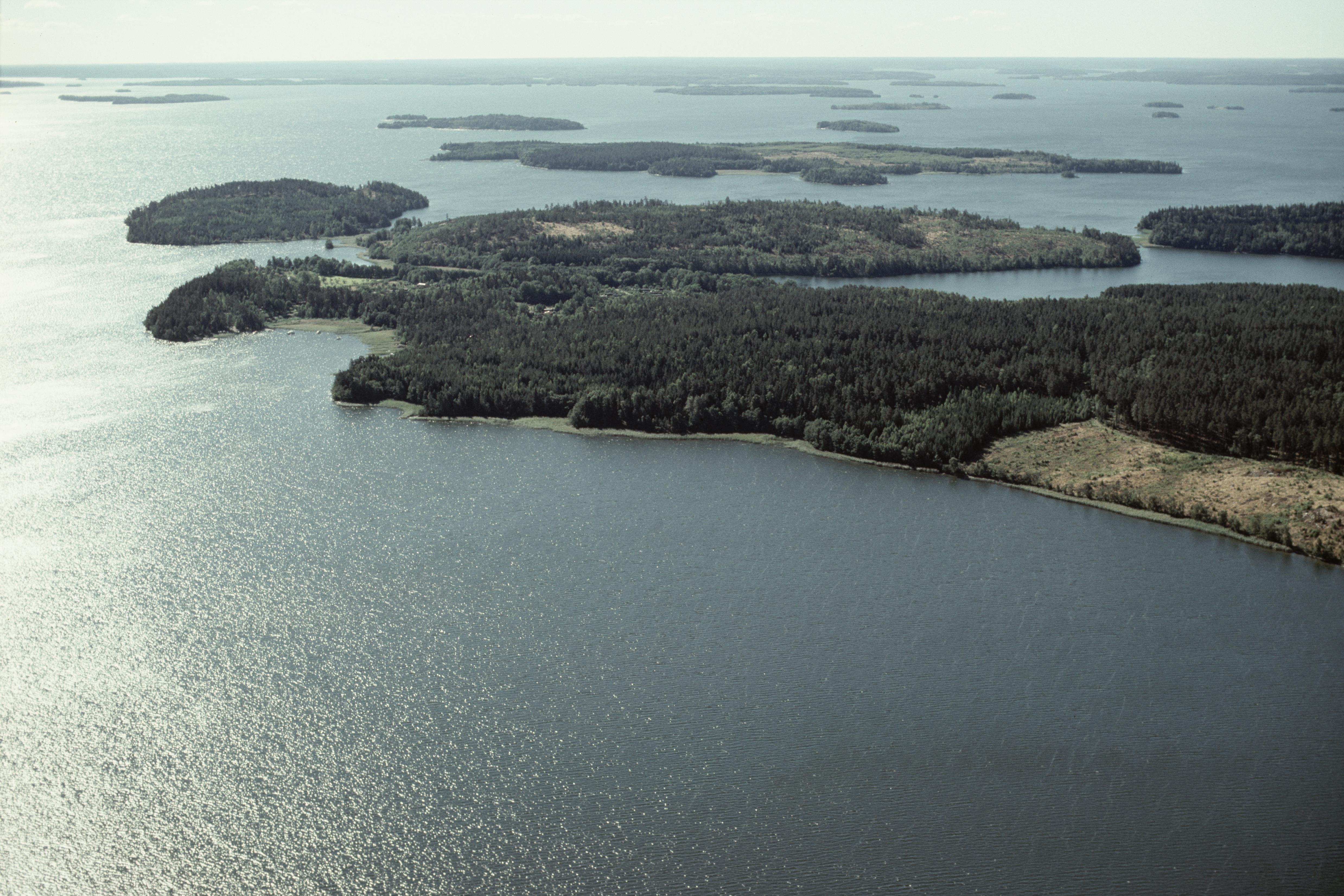 Beskrivning: Norra Björkfjärden i Mälaren. Vid bildens mitt Brandholmssunds by och Koholmen. Uppe till vänster fornborg och röse RAÄnr Torsvi 16:1-2 på Ytterholmen. Bilden är tagen mot (väderstreck): OSO