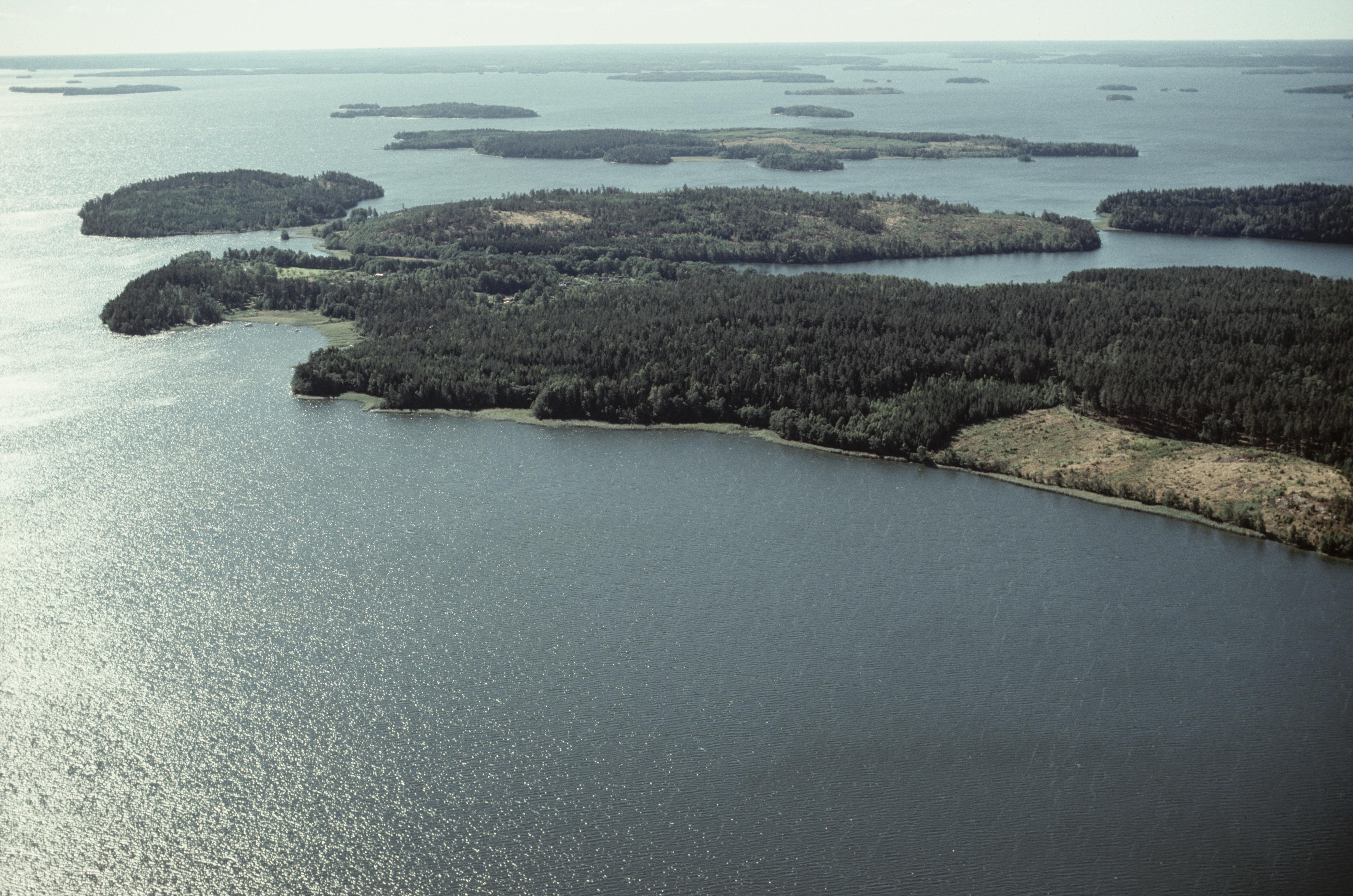 Beskrivning: Norra Björkfjärden i Mälaren. Vid bildens mitt Brandholmssunds by och Koholmen. Uppe till vänster fornborg och röse RAÄnr Torsvi 16:1-2 på Ytterholmen. Bilden är tagen mot (väderstreck): OSO