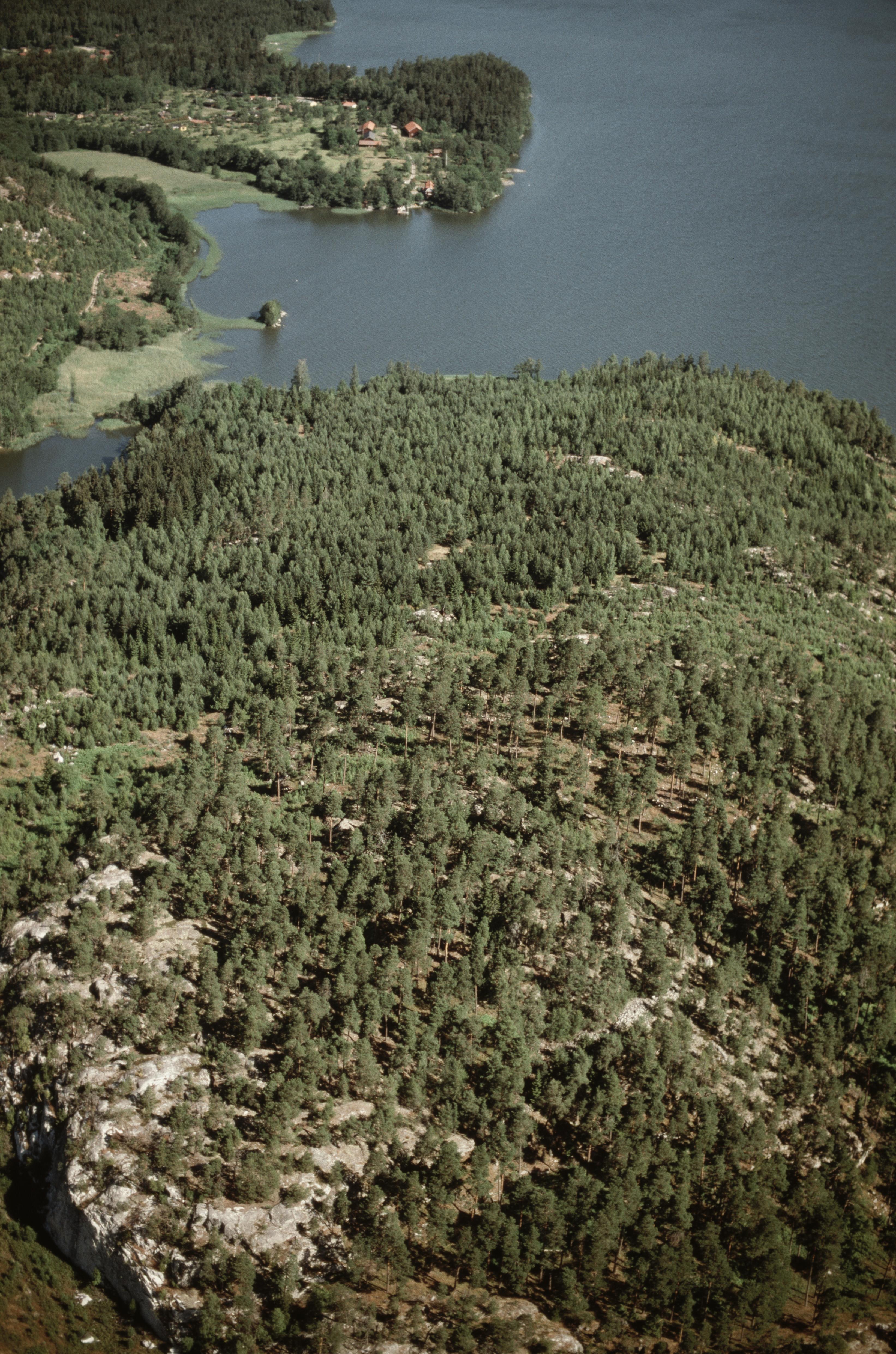 Beskrivning: Norra Björkfjärden i Mälaren. Fornborg och röse RAÄnr Torsvi 16:1-2 på Ytterholmen, söder om Brandholmssunds by. Bilden är tagen mot (väderstreck): N