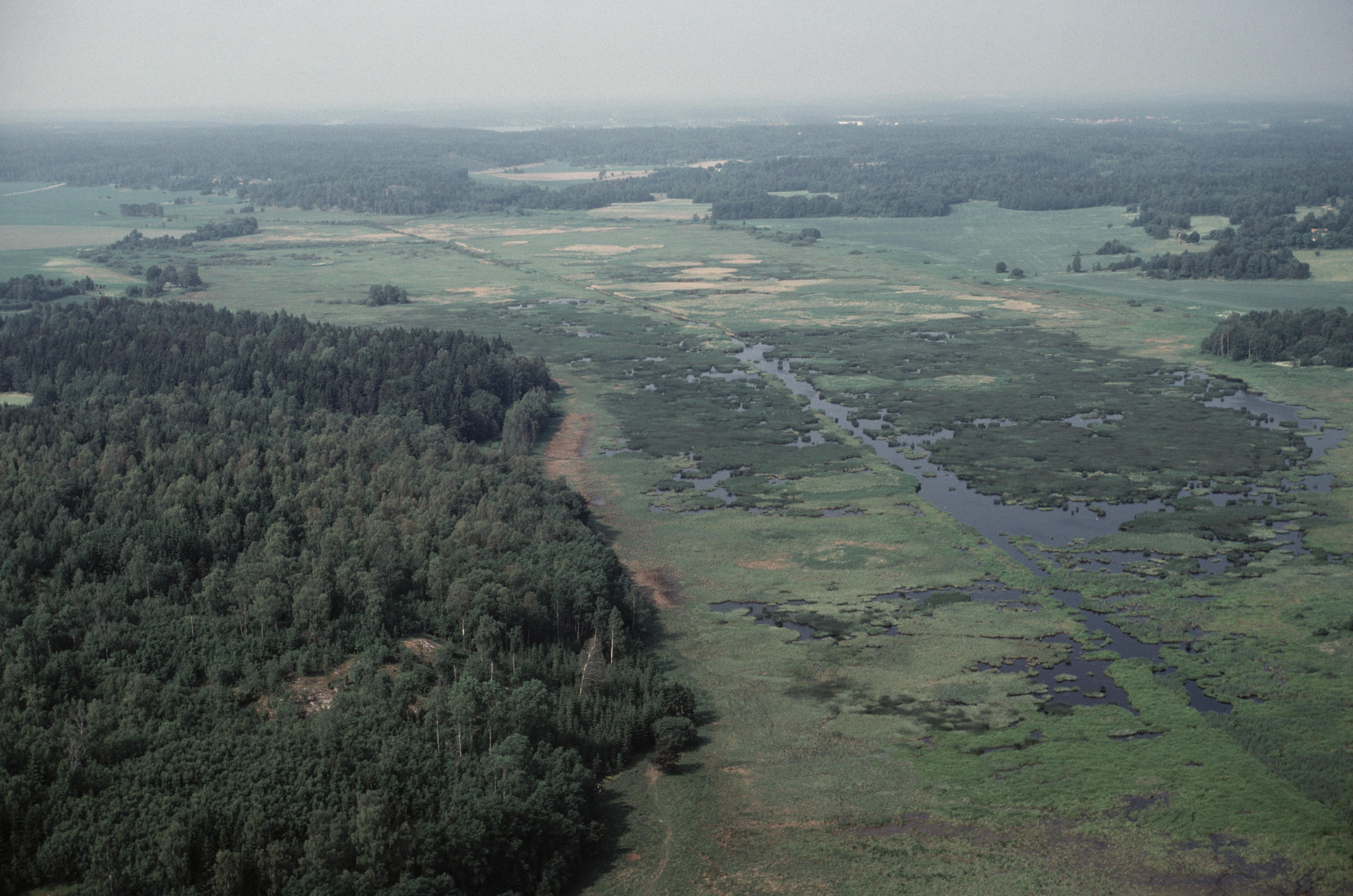 Beskrivning: Nere till vänster området Asphagen på gränsen mellan socknen Össeby-Garn (i bildens nedre kant) och Angarn i bildens vänstra del). I skogen till vänster om bildens mitt gravfält RAÄnr Angarn 69:1. Uppe till höger Angarnssjöängen på gränsen mot Vallentuna socken. Bilden är tagen mot (väderstreck): SV